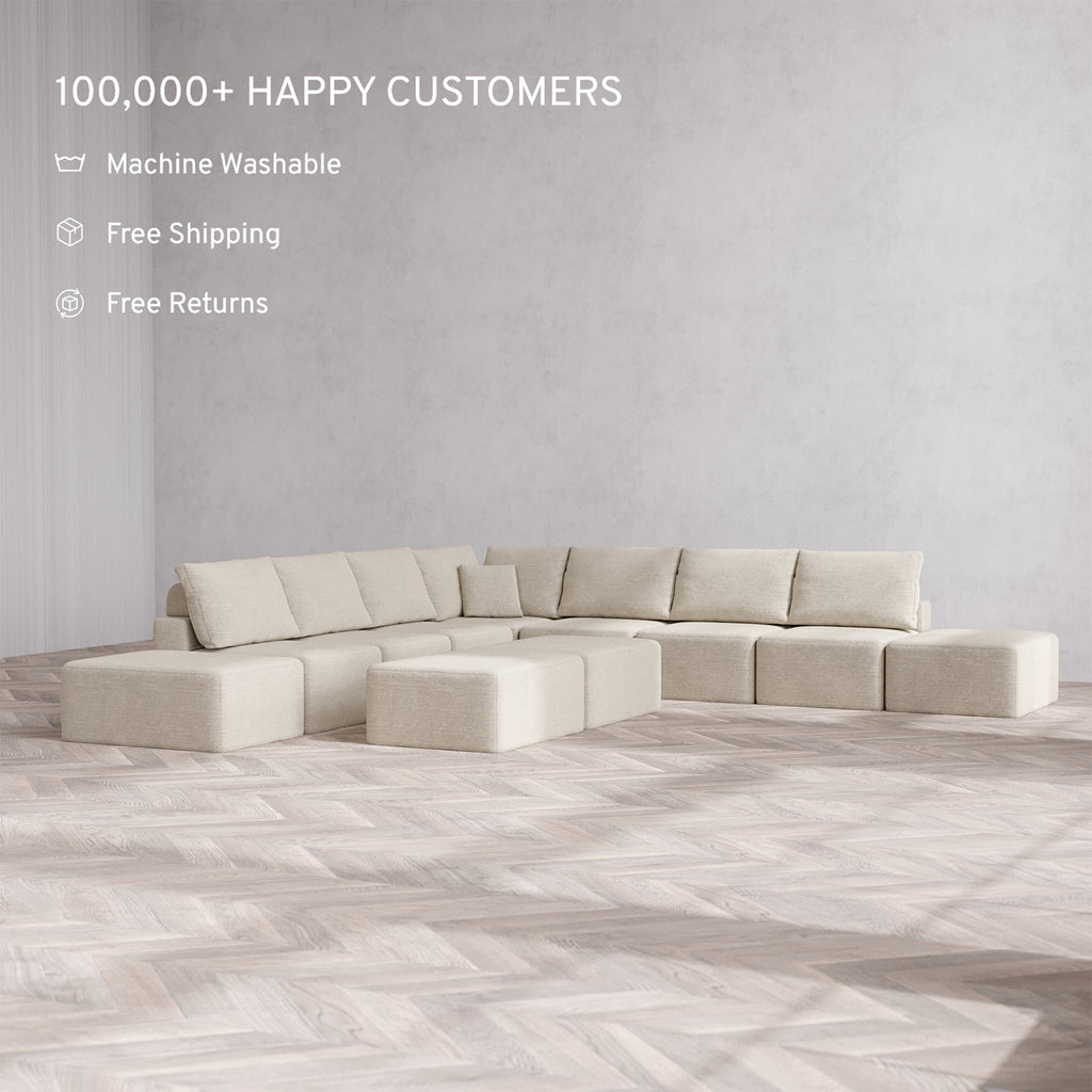 Machine Washable: Every piece of fabric—including the internal quilted duvet—is fully removable and machine washable. It’s the only Cloud-style sofa you can truly deep clean, effortlessly.