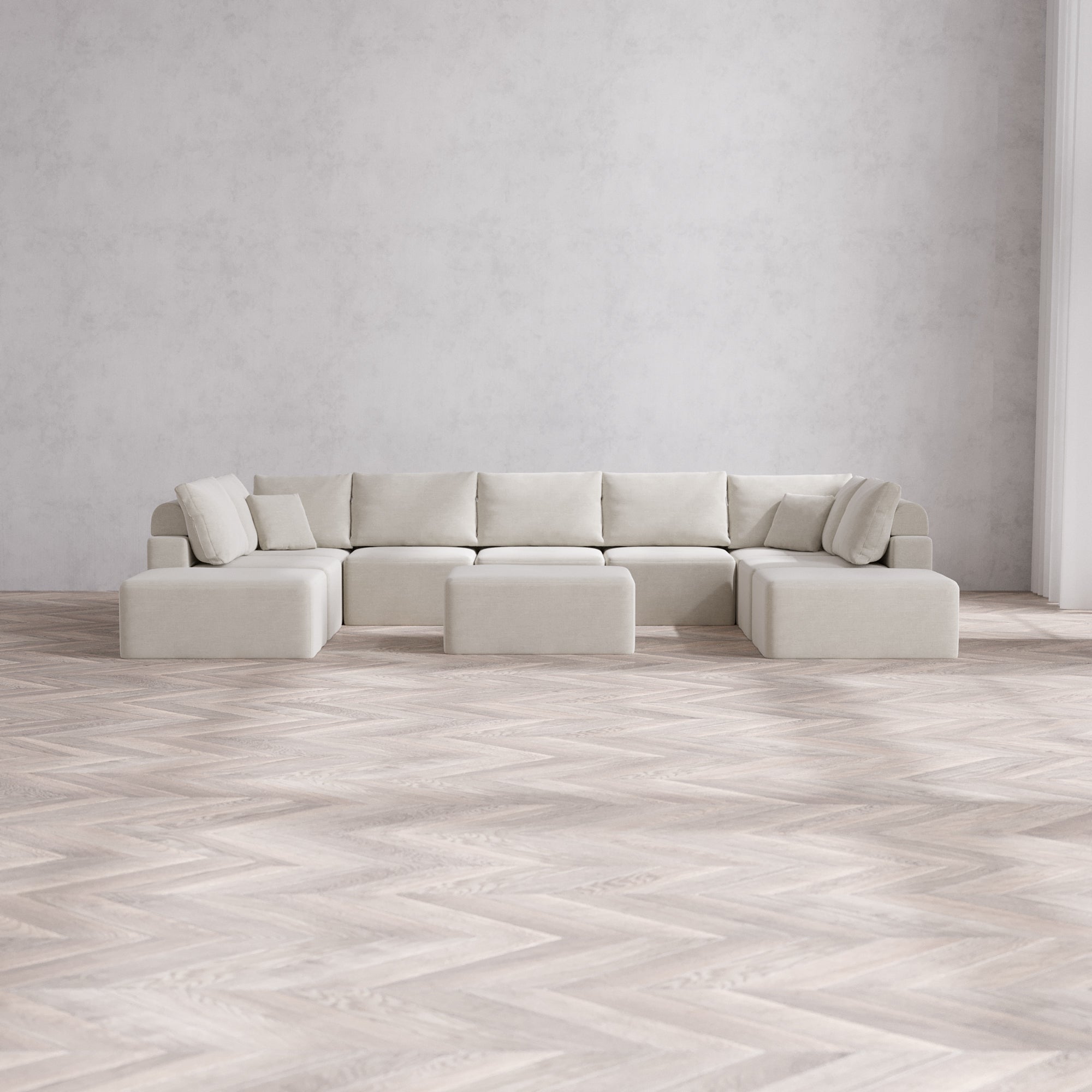 Slipcover Only - Modular Washable 9-Seater Open-Ends U Sectional + Chaise Ottoman Cloud + Bolster Sofa in Cashew