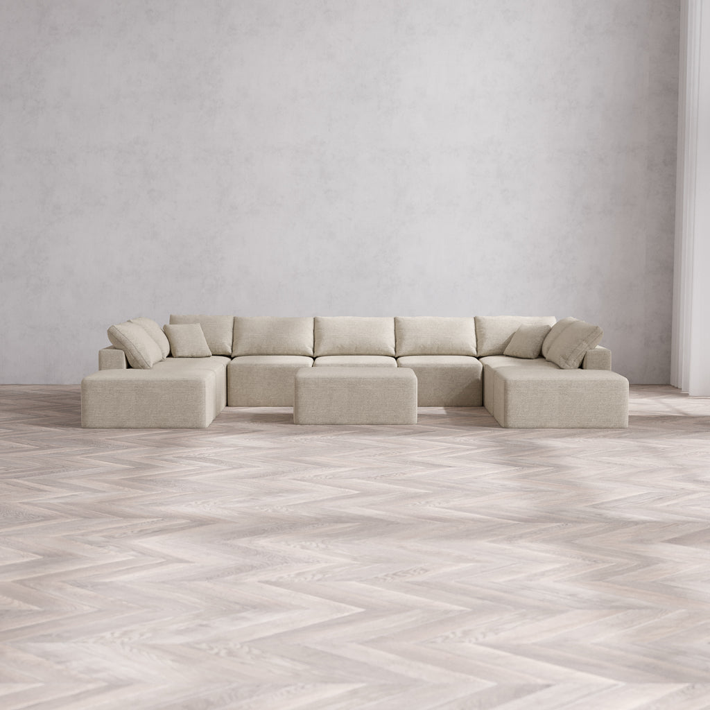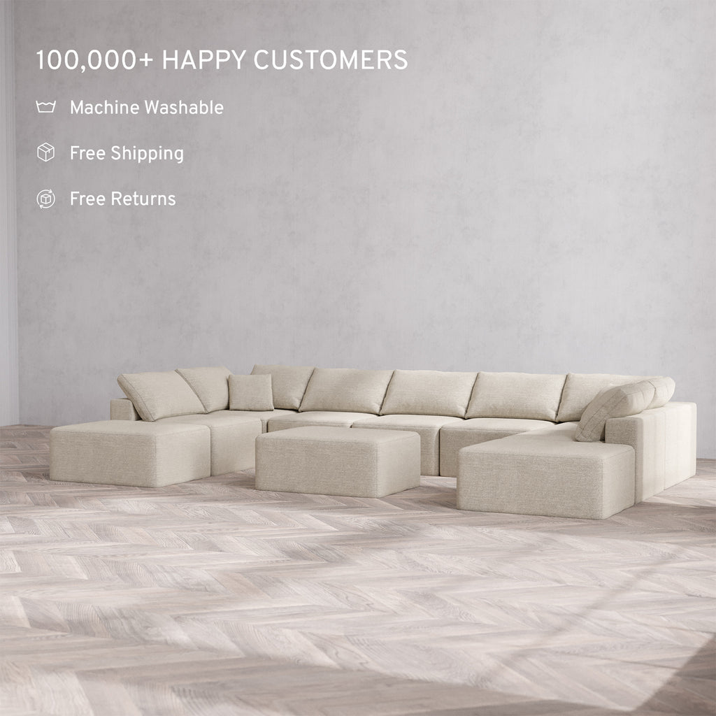 Slipcover Only - Modular Washable 9-Seater Open-Ends U Sectional + Chaise Ottoman Cloud Sofa in Sandstone