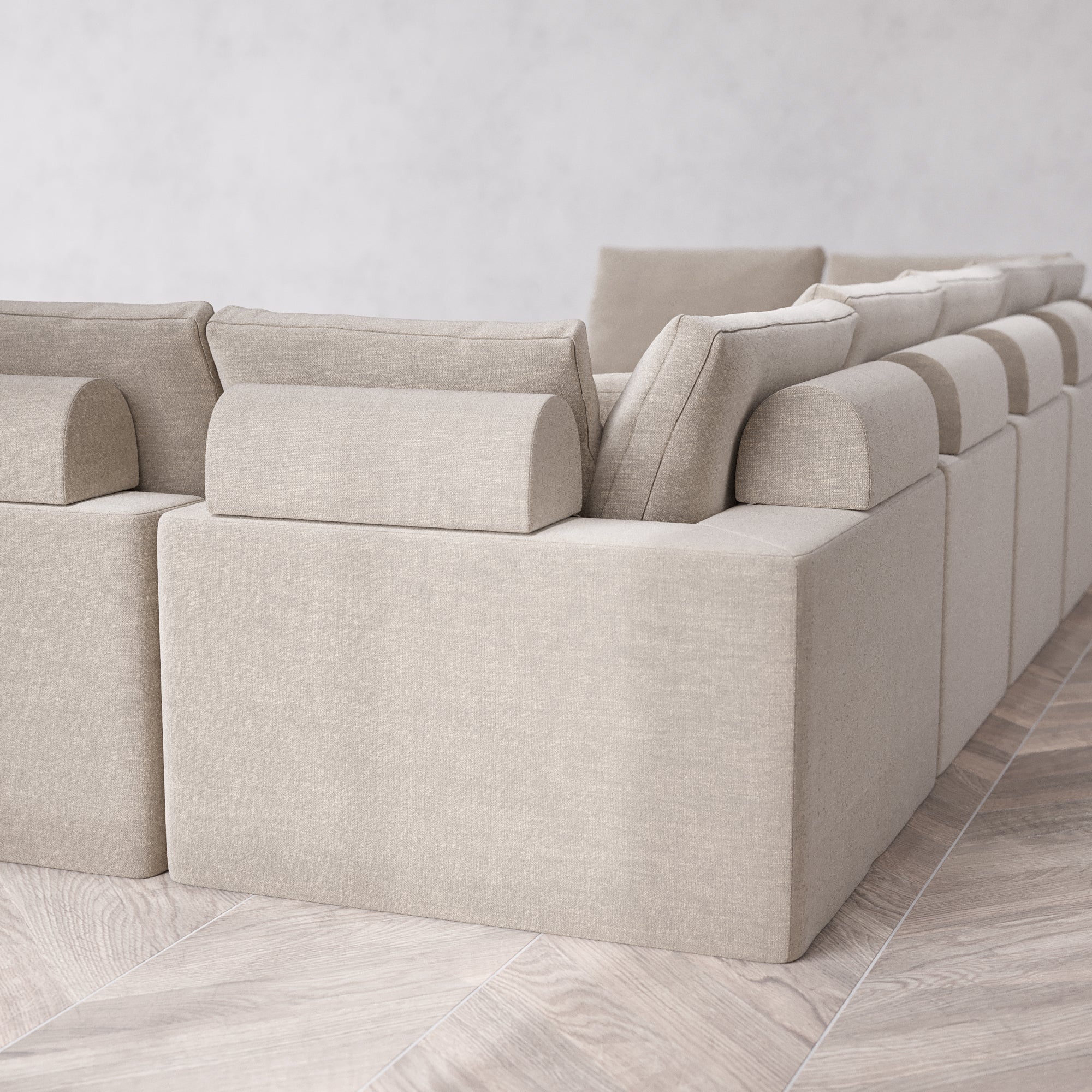 Slipcover Only - Modular Washable 9-Seater Open-Ends U Sectional Cloud + Bolster Sofa in Caraway