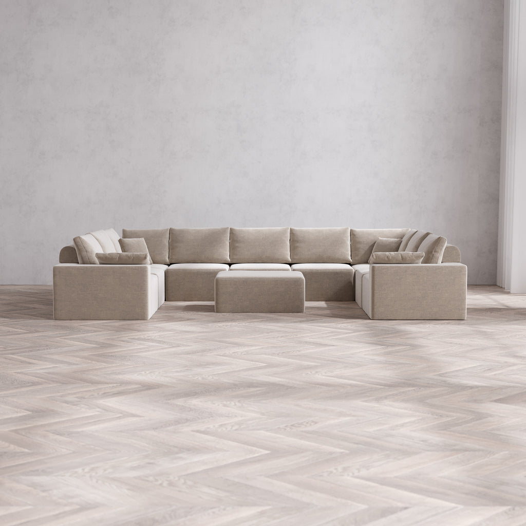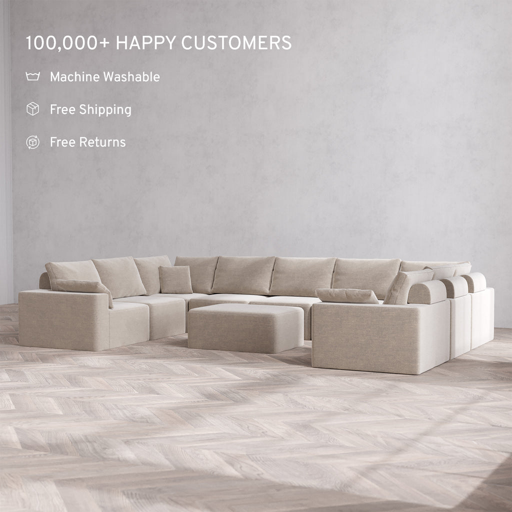 Slipcover Only - Modular Washable 9-Seater U Sectional + Chaise Ottoman Cloud + Bolster Sofa in Caraway