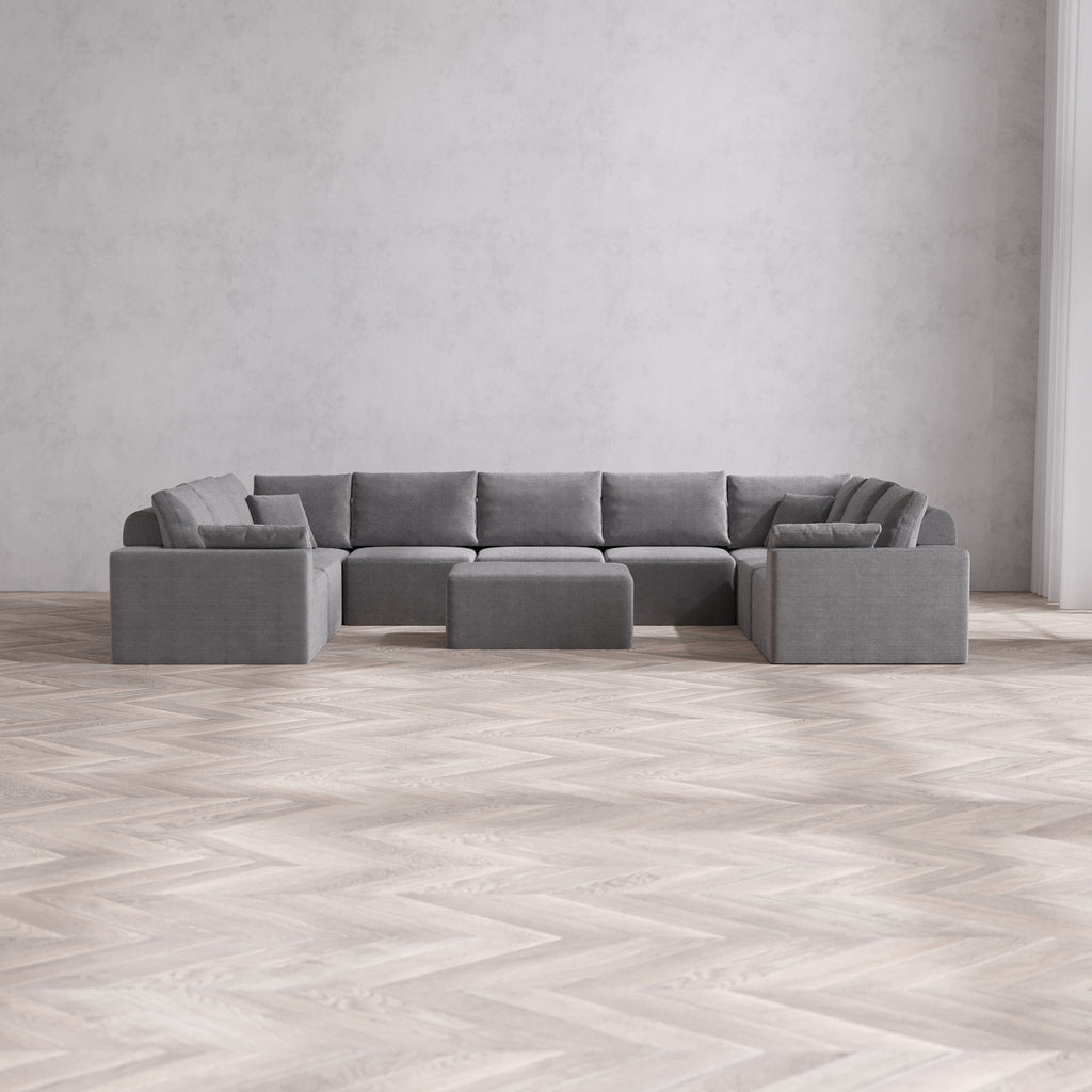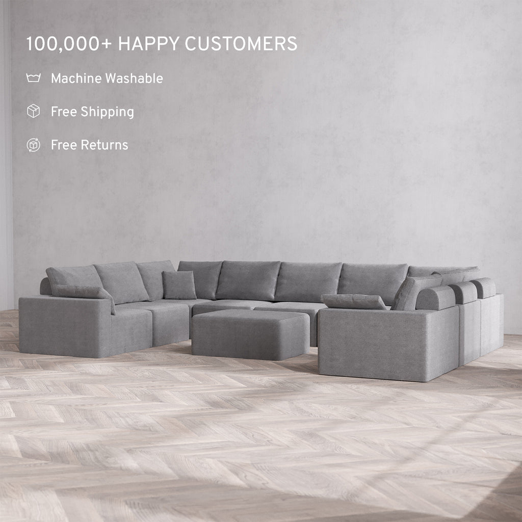 Slipcover Only - Modular Washable 9-Seater U Sectional + Chaise Ottoman Cloud + Bolster Sofa in Slate
