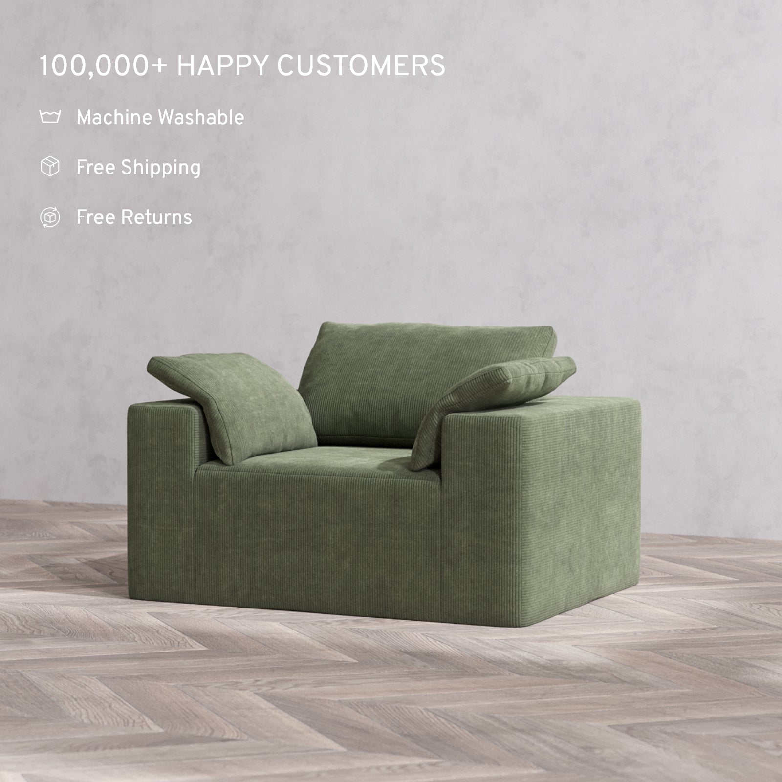 Slipcover Only - Modular Washable Armchair Cloud Sofa in Juniper