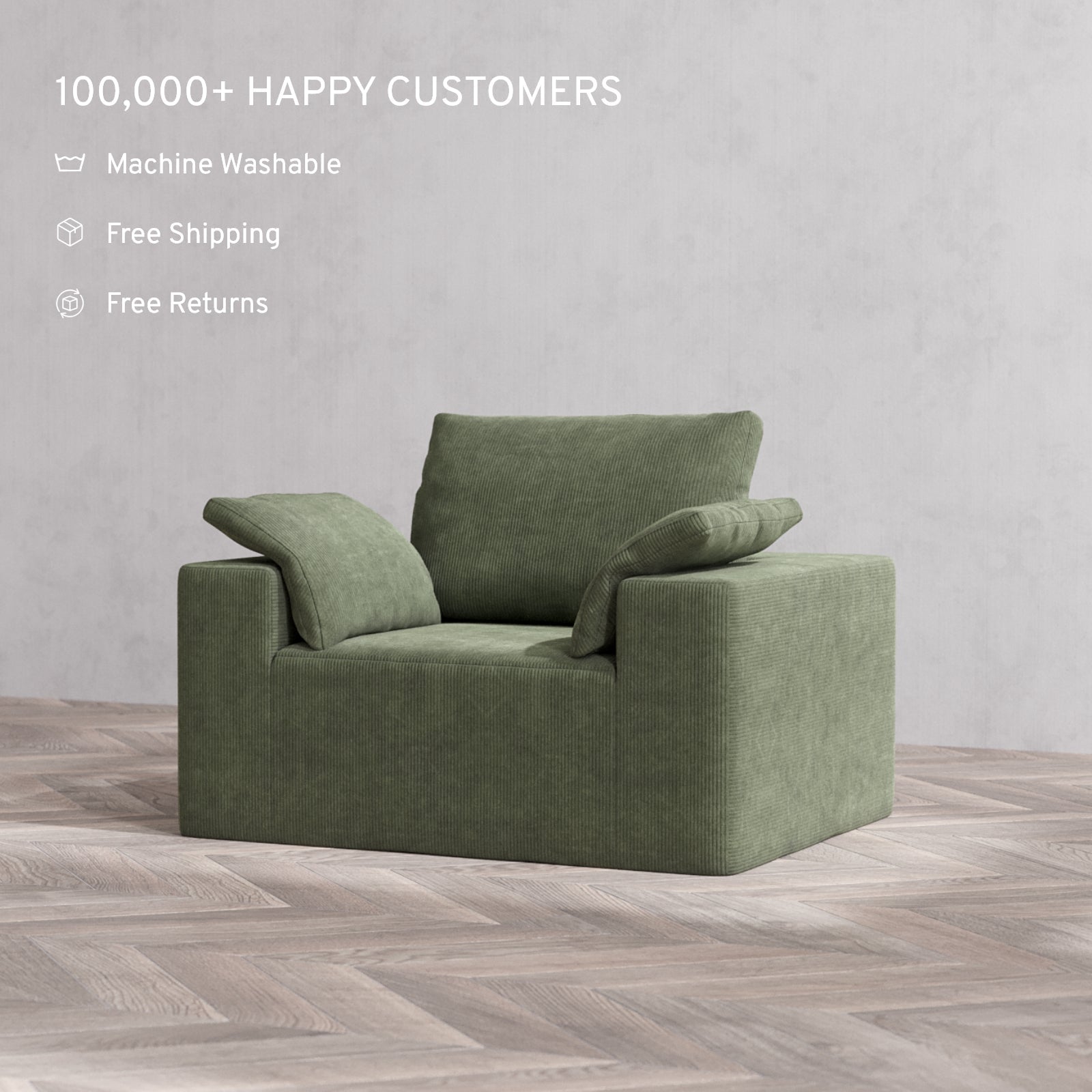 Machine Washable: Every piece of fabric—including the internal quilted duvet—is fully removable and machine washable. It’s the only Cloud-style sofa you can truly deep clean, effortlessly.