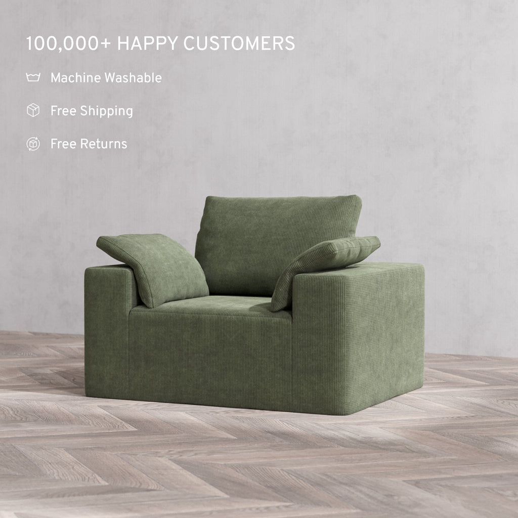 Slipcover Only - Modular Washable Armchair Cloud + Bolster Sofa in Juniper