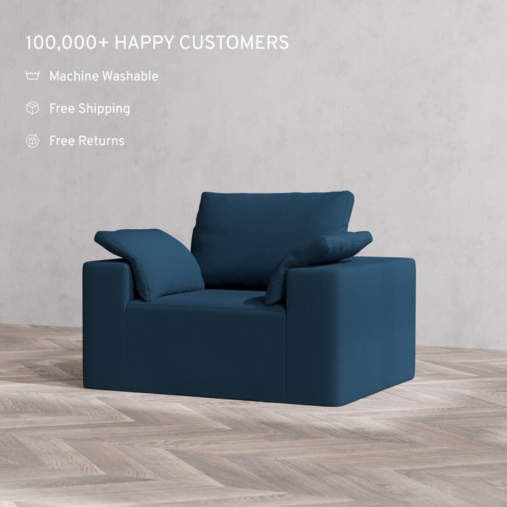 Machine Washable: Every piece of fabric—including the internal quilted duvet—is fully removable and machine washable. It’s the only Cloud-style sofa you can truly deep clean, effortlessly.