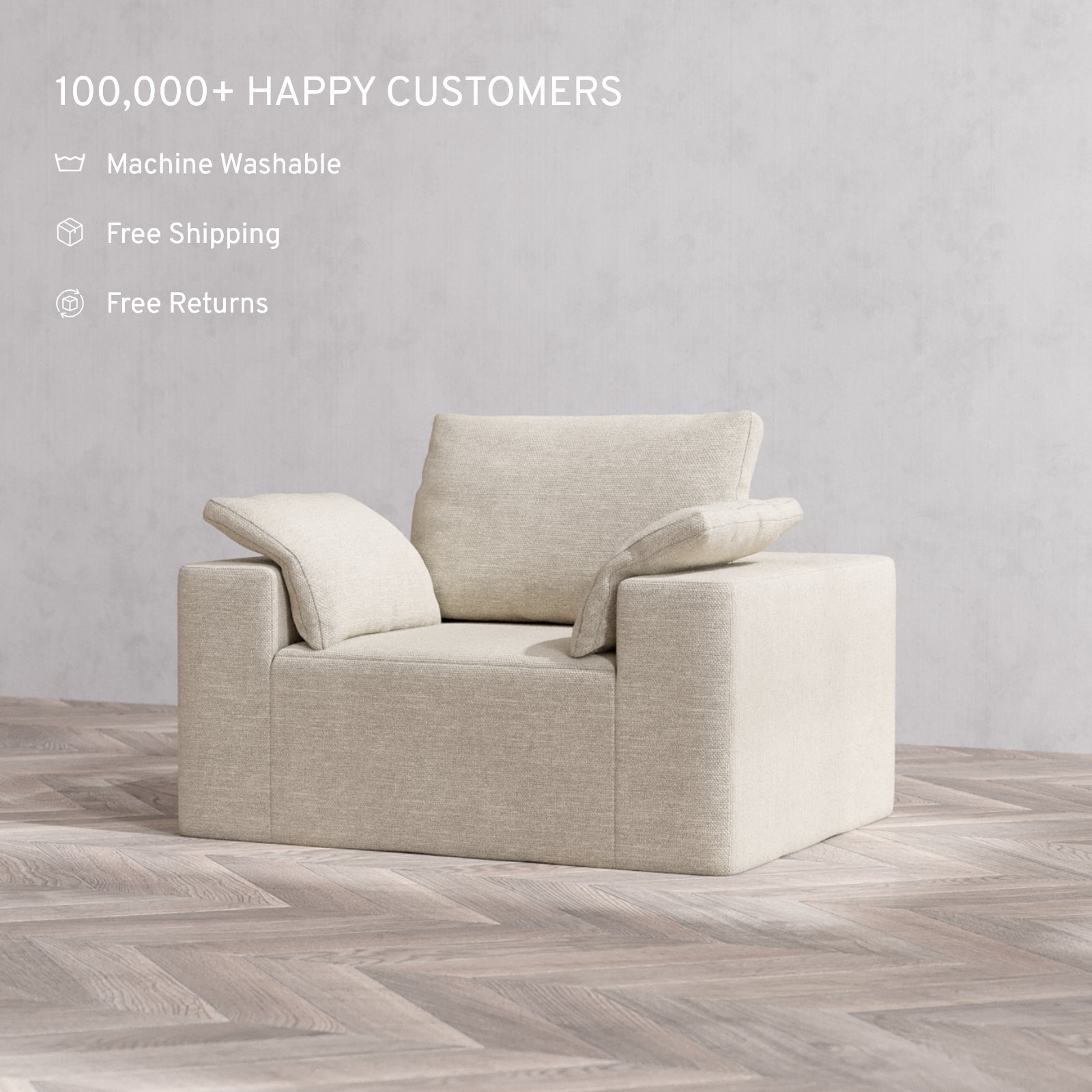 Machine Washable: Every piece of fabric—including the internal quilted duvet—is fully removable and machine washable. It’s the only Cloud-style sofa you can truly deep clean, effortlessly.