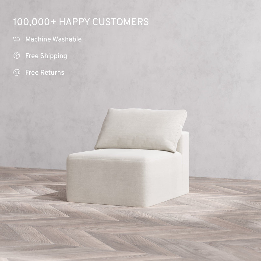 Machine Washable: From the outer slipcovers to the internal quilted duvet, every fabric component is fully removable and machine washable. It’s the only Cloud-style sofa designed for effortless, full-depth cleaning.