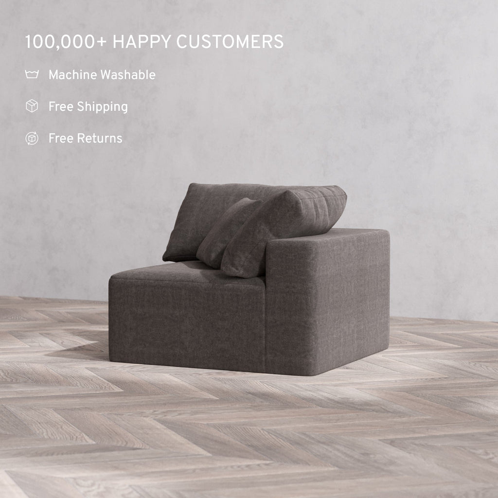 Machine Washable: From the outer slipcovers to the internal quilted duvet, every fabric component is fully removable and machine washable. It’s the only Cloud-style sofa designed for effortless, full-depth cleaning.