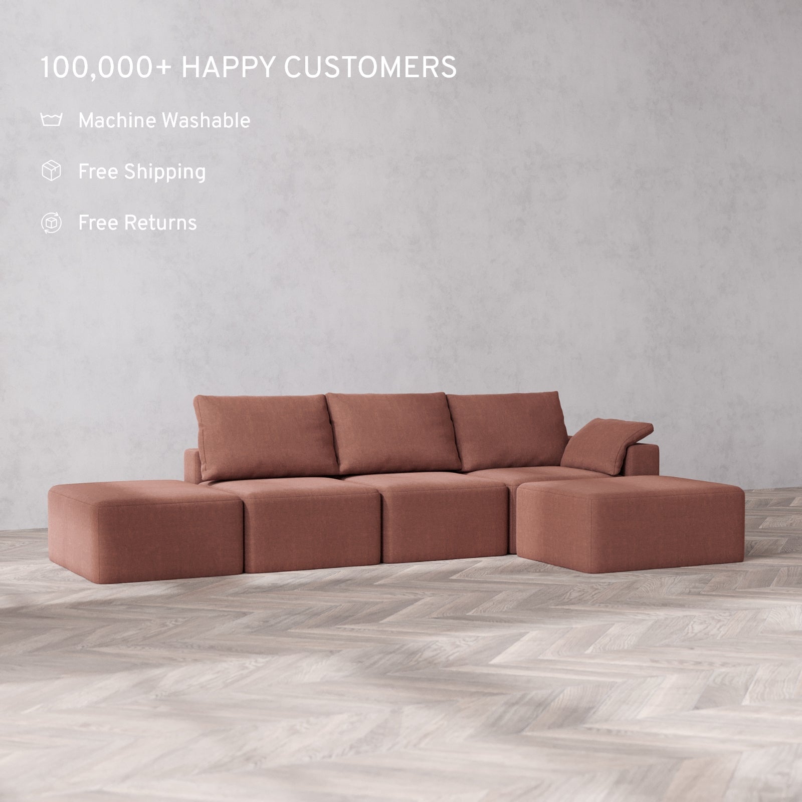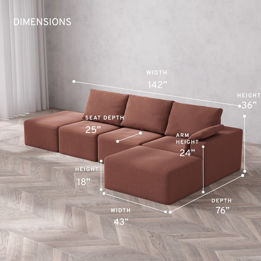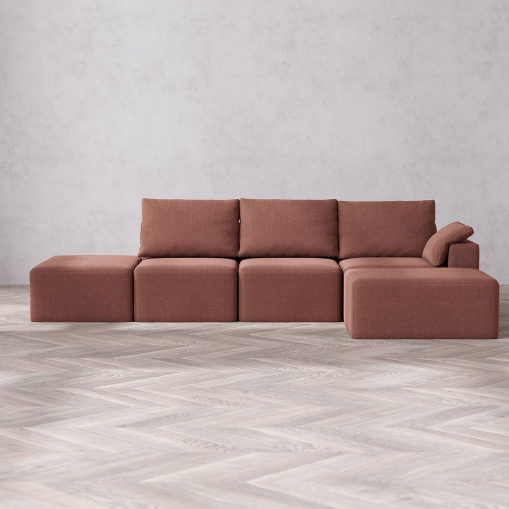 Slipcover Only - Modular Washable 3-Seater Open End Chaise Sectional Cloud + Bolster Sofa in Sumac | Right-Facing Arm