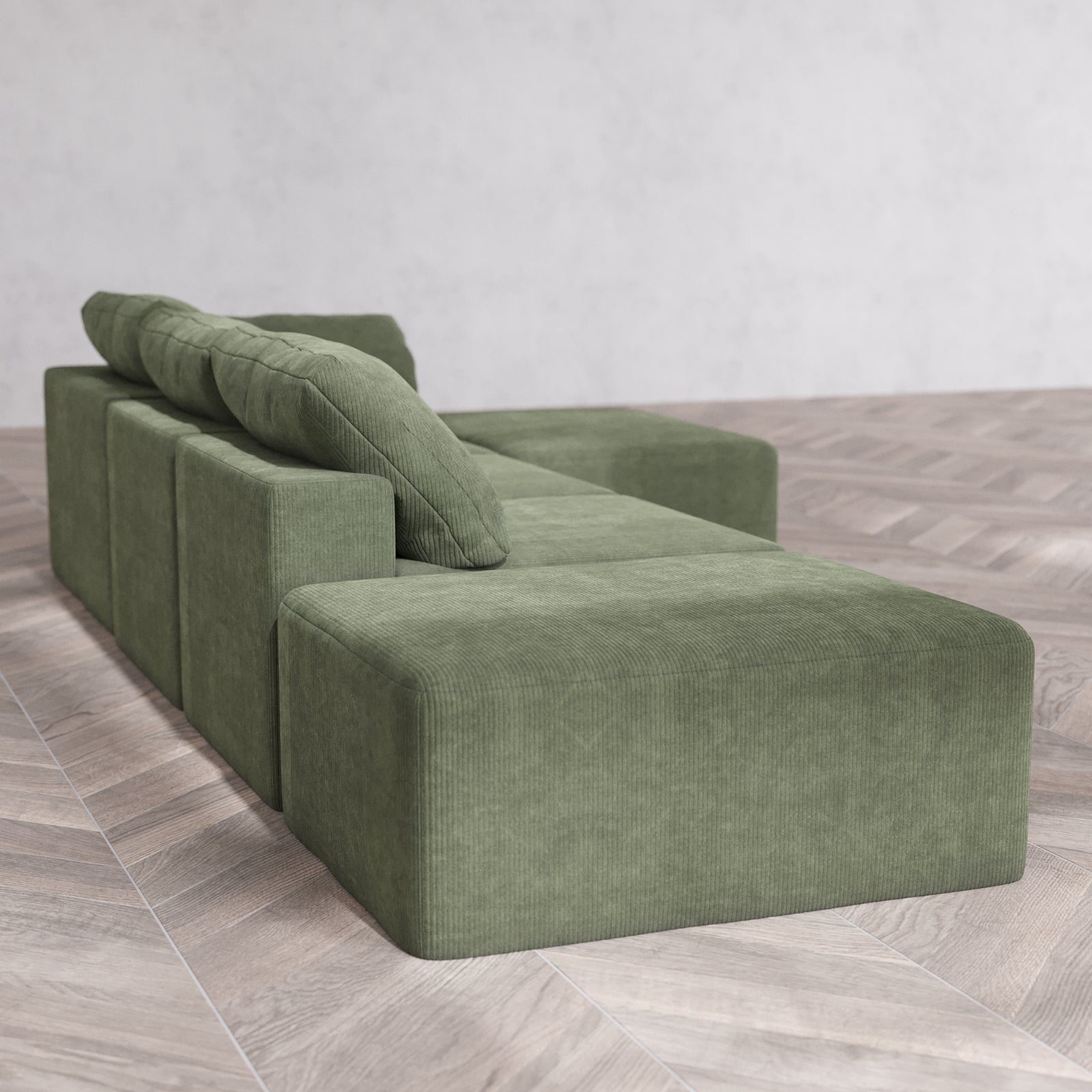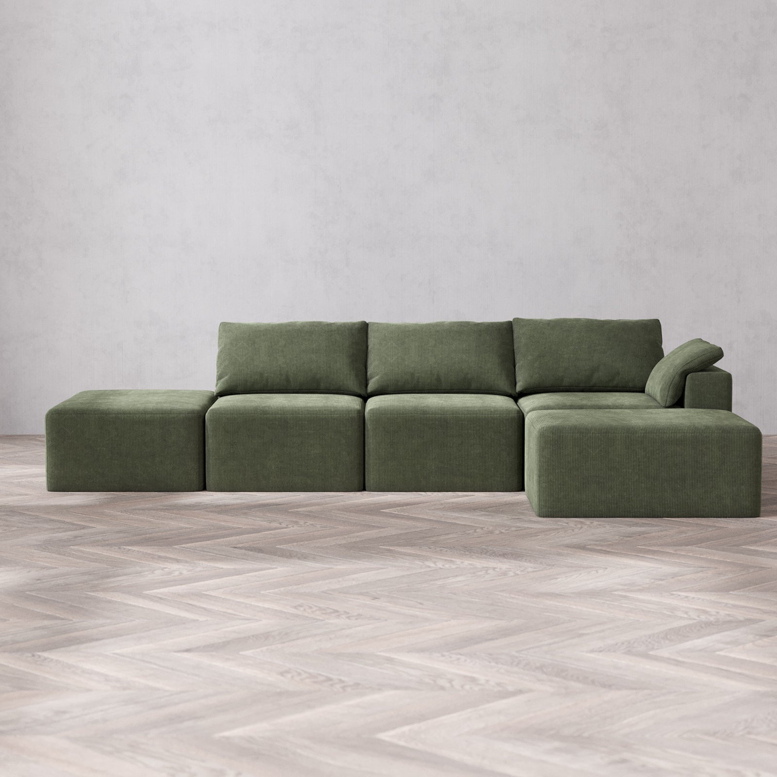 Slipcover Only - Modular Washable 3-Seater Open End Chaise Sectional Cloud Sofa in Juniper | Right-Facing Arm