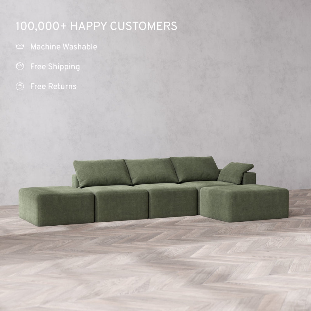 Machine Washable: Every piece of fabric—including the internal quilted duvet—is fully removable and machine washable. It’s the only Cloud-style sofa you can truly deep clean, effortlessly.
