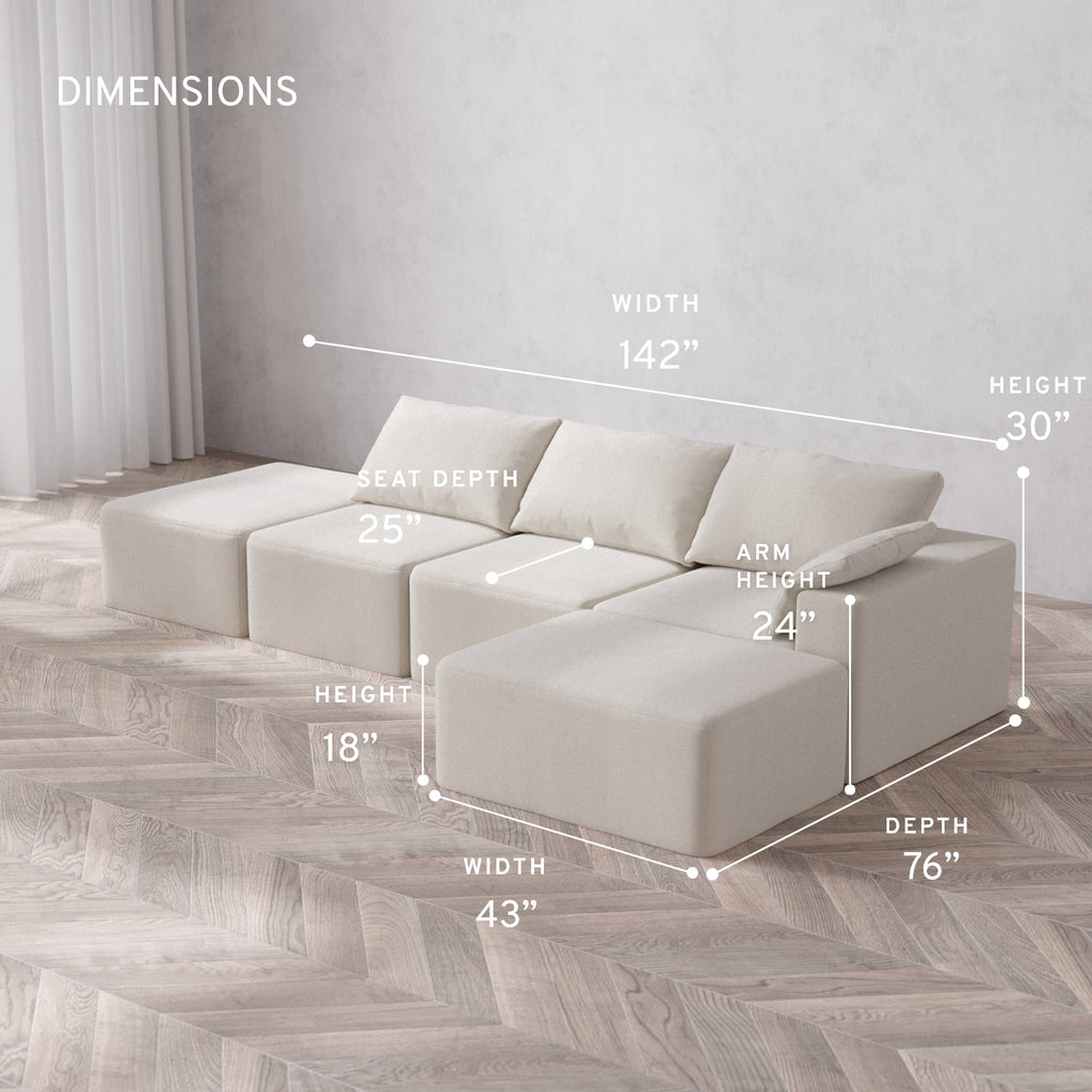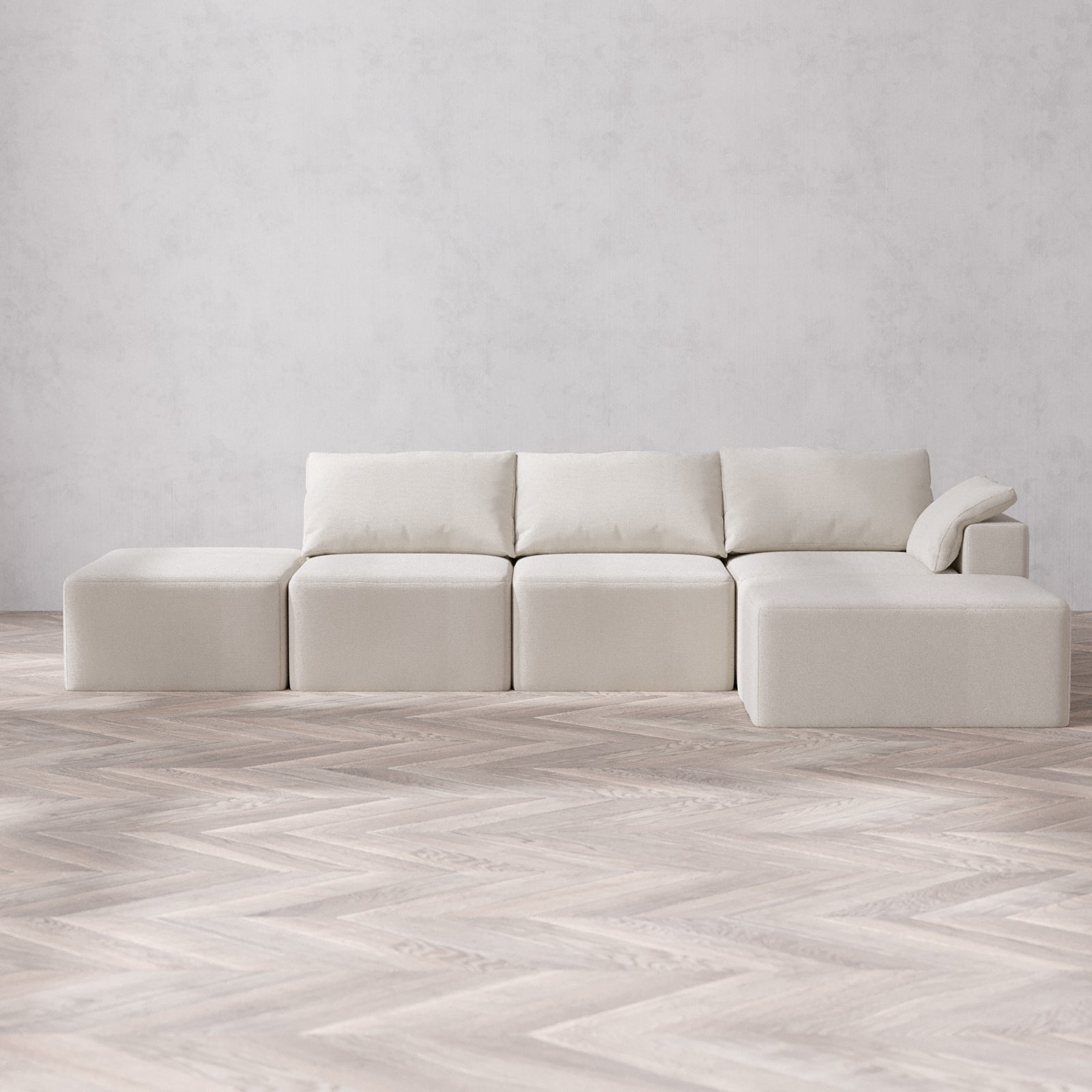 Slipcover Only - Modular Washable 3-Seater Open End Chaise Sectional Cloud Sofa in Pearl | Right-Facing Arm