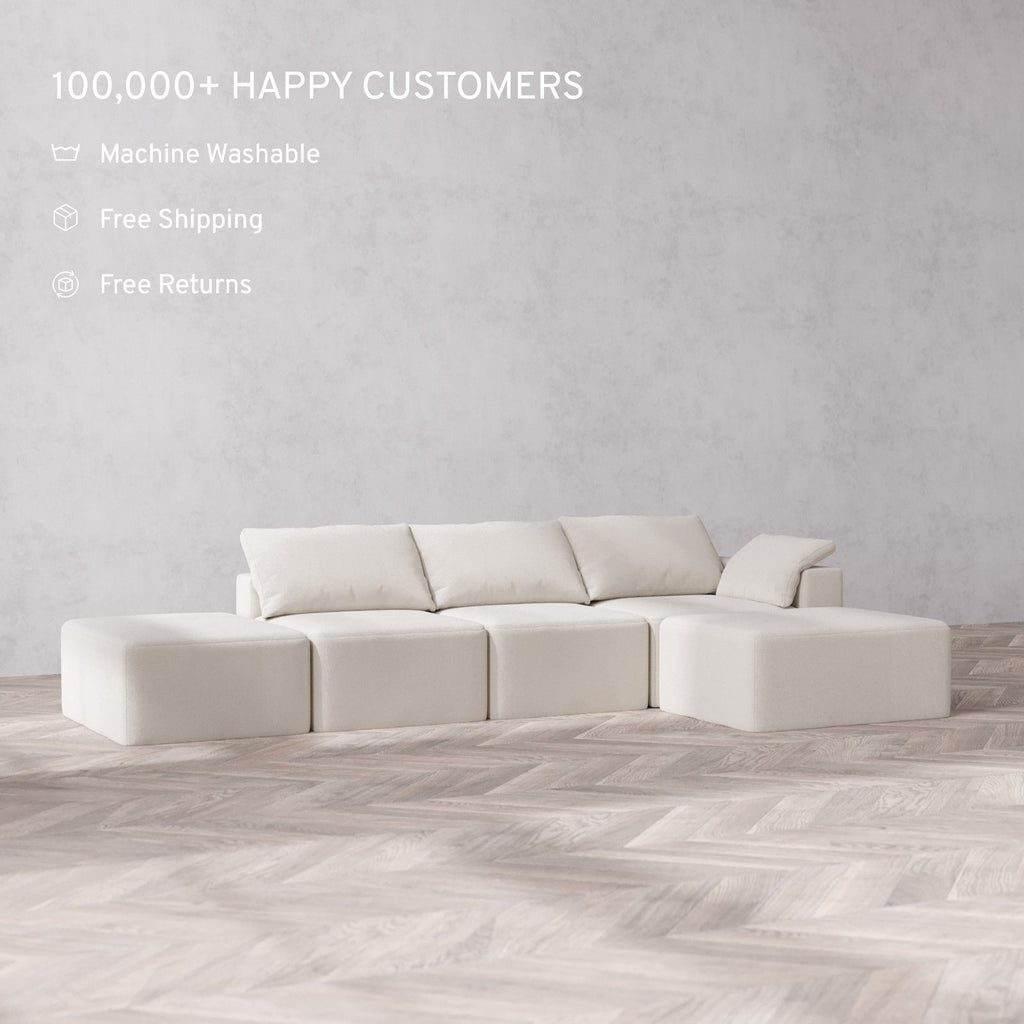 Machine Washable: Every piece of fabric—including the internal quilted duvet—is fully removable and machine washable. It’s the only Cloud-style sofa you can truly deep clean, effortlessly.