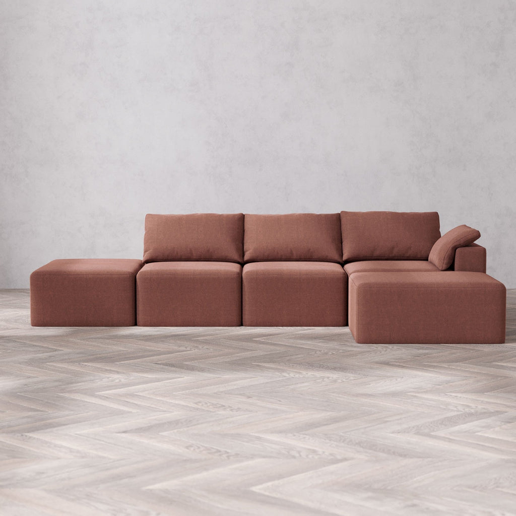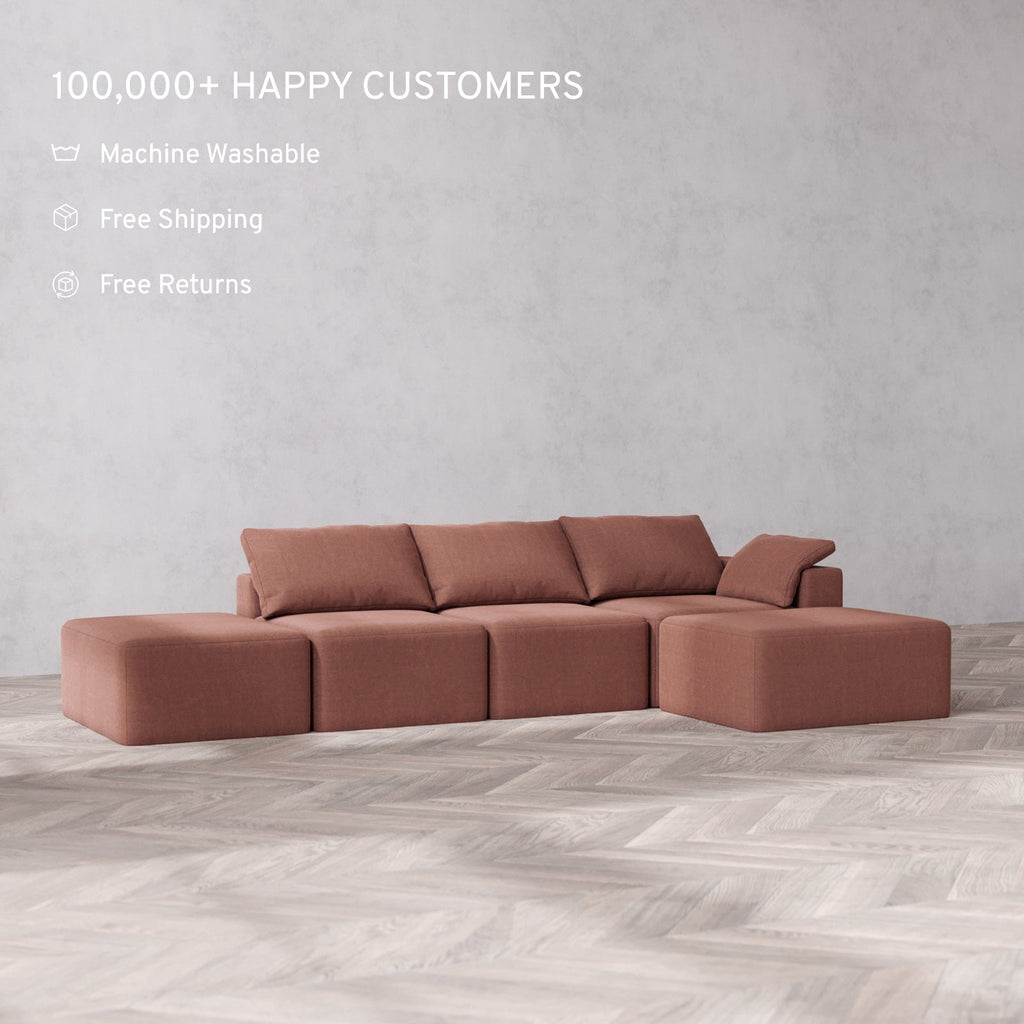 Slipcover Only - Modular Washable 3-Seater Open End Chaise Sectional Cloud Sofa in Sumac | Right-Facing Arm