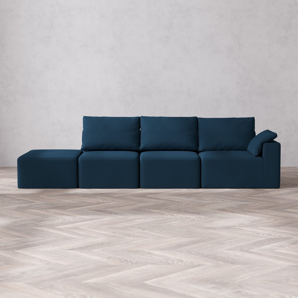 Slipcover Only - Modular Washable 3-Seater Open End Cloud + Bolster Sofa in Lazuli | Right-Facing Arm