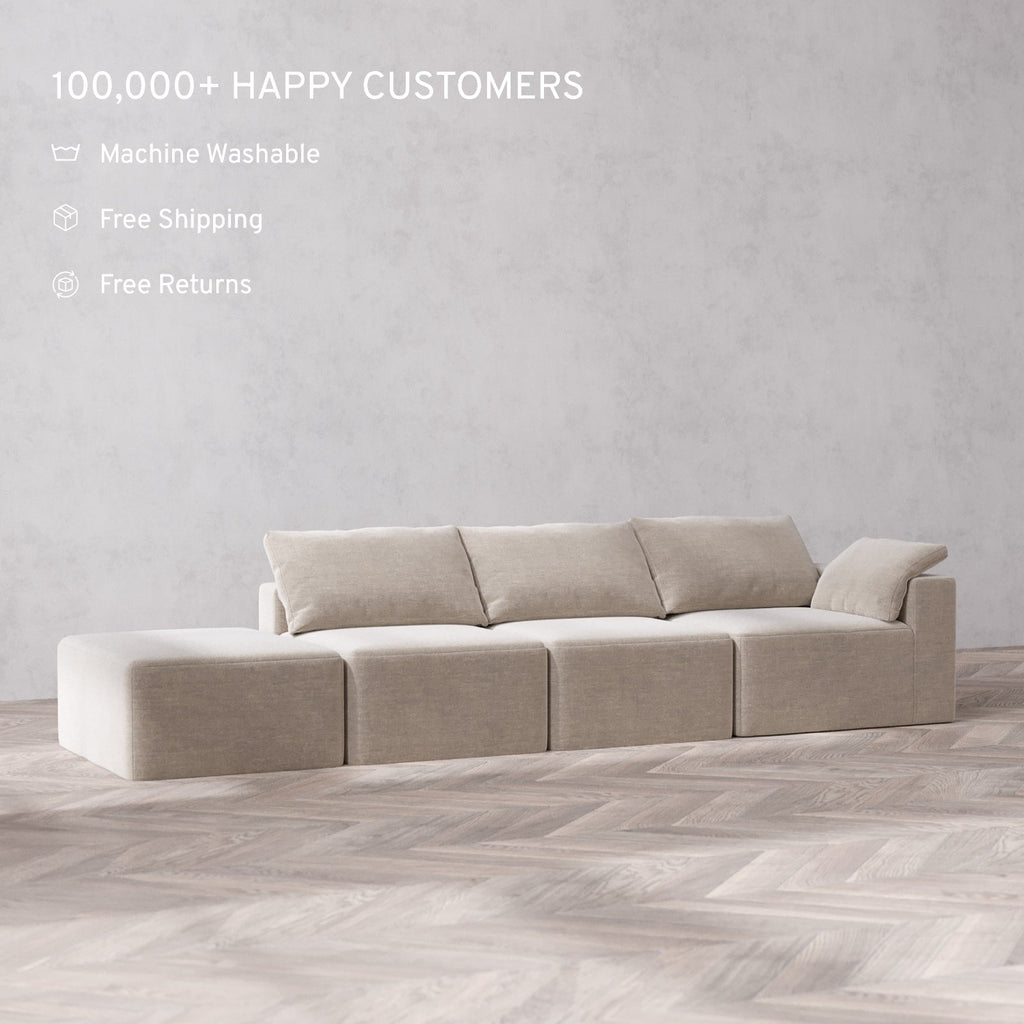 Machine Washable: Every piece of fabric—including the internal quilted duvet—is fully removable and machine washable. It’s the only Cloud-style sofa you can truly deep clean, effortlessly.