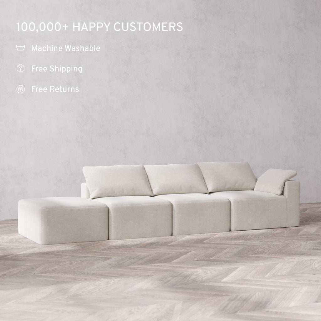 Machine Washable: Every piece of fabric—including the internal quilted duvet—is fully removable and machine washable. It’s the only Cloud-style sofa you can truly deep clean, effortlessly.