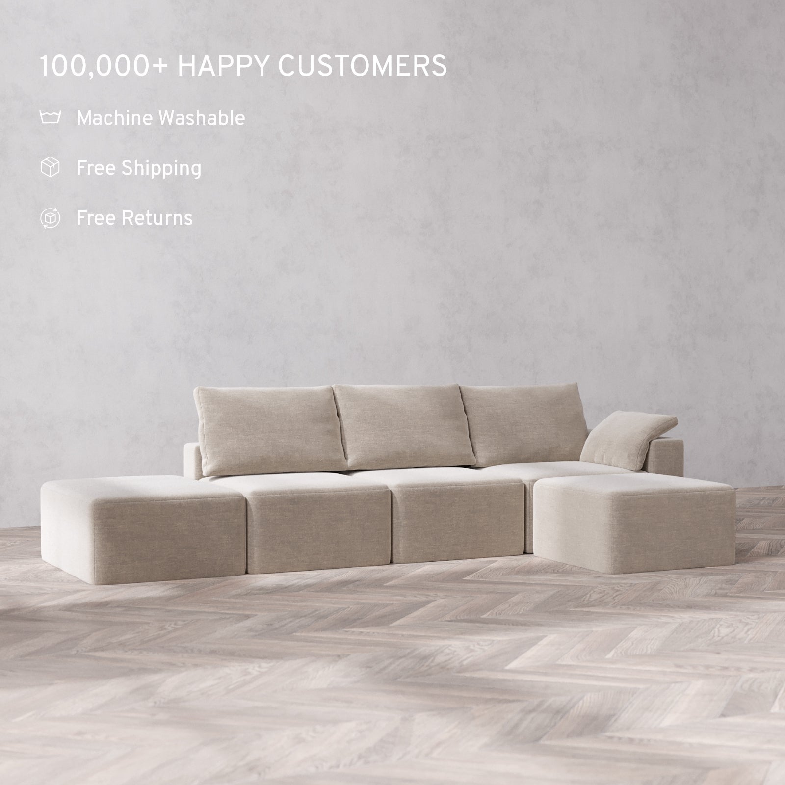 Machine Washable: Every piece of fabric—including the internal quilted duvet—is fully removable and machine washable. It’s the only Cloud-style sofa you can truly deep clean, effortlessly.