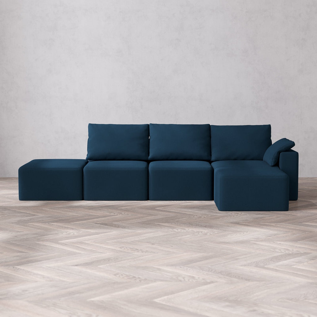 Slipcover Only - Modular Washable 3-Seater Open End Sectional Cloud + Bolster Sofa in Lazuli | Right-Facing Arm