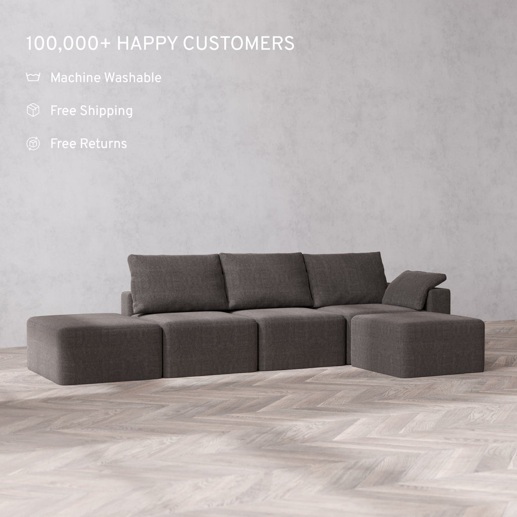 Machine Washable: Every piece of fabric—including the internal quilted duvet—is fully removable and machine washable. It’s the only Cloud-style sofa you can truly deep clean, effortlessly.