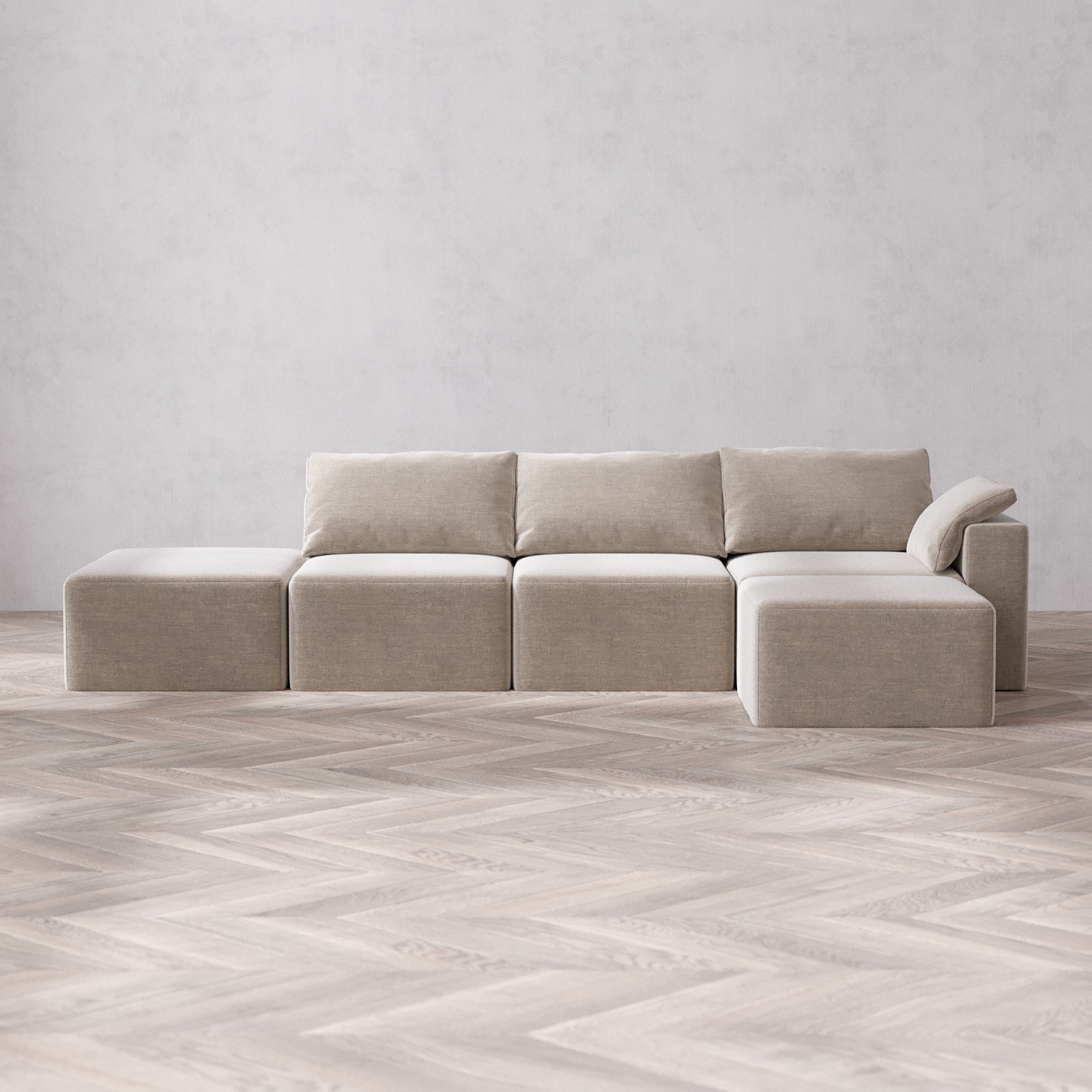 Slipcover Only - Modular Washable 3-Seater Open End Sectional Cloud Sofa in Caraway | Right-Facing Arm