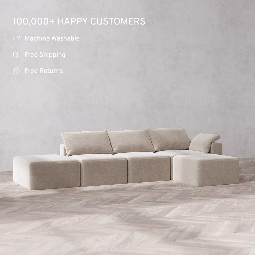 Machine Washable: Every piece of fabric—including the internal quilted duvet—is fully removable and machine washable. It’s the only Cloud-style sofa you can truly deep clean, effortlessly.