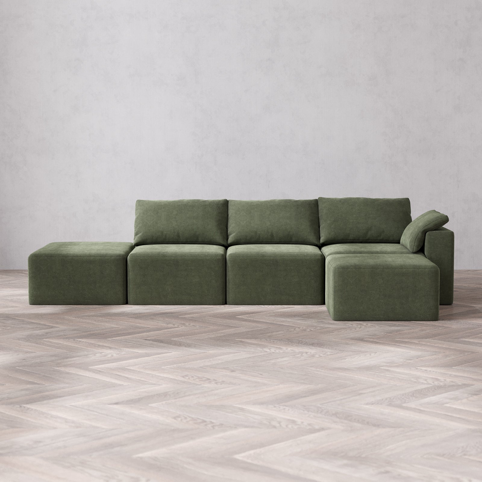 Slipcover Only - Modular Washable 3-Seater Open End Sectional Cloud Sofa in Juniper | Right-Facing Arm