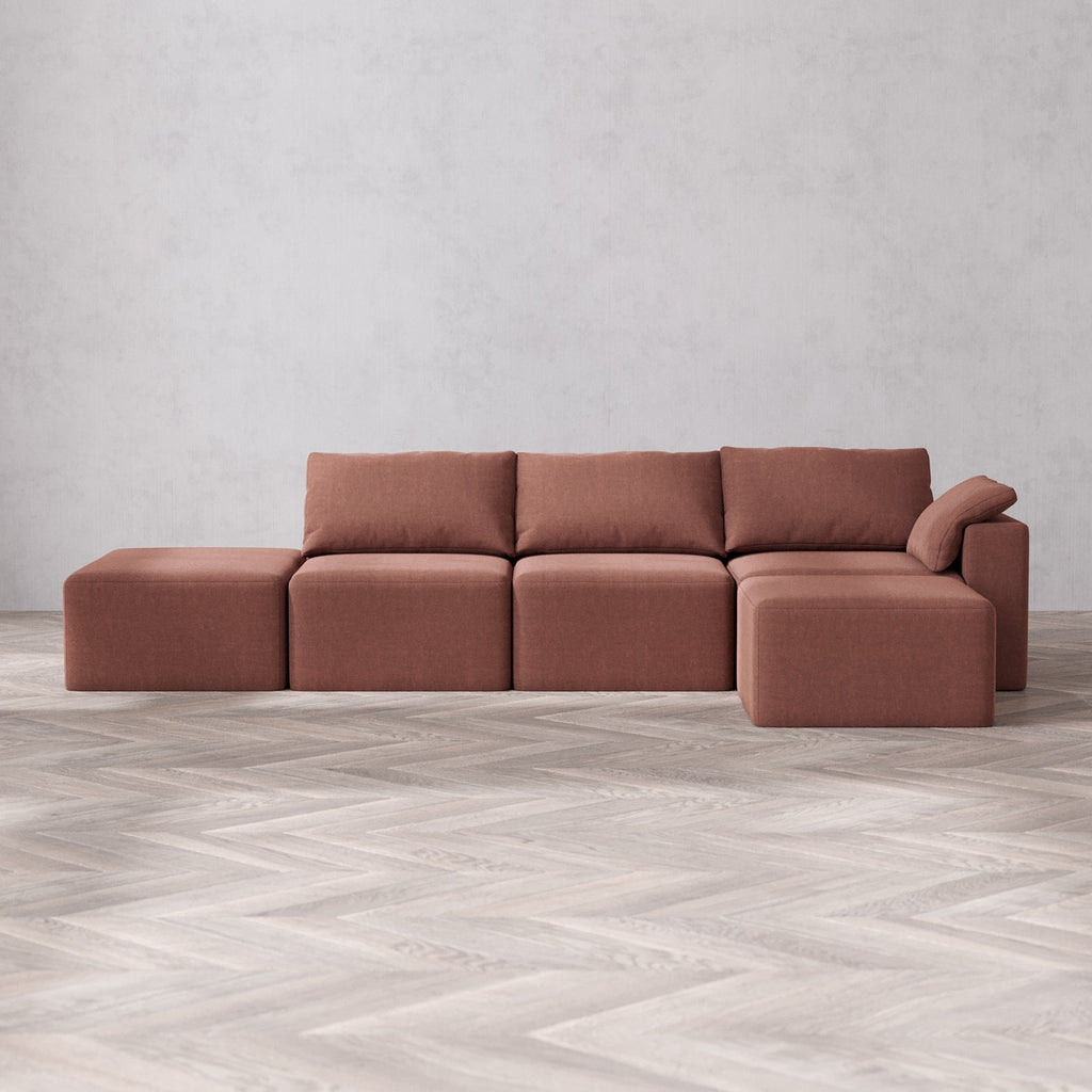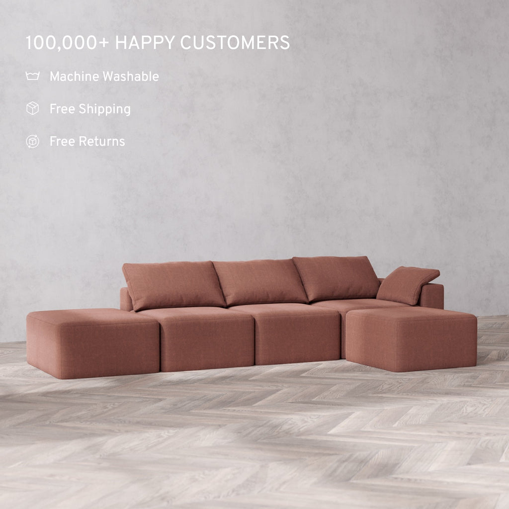 Slipcover Only - Modular Washable 3-Seater Open End Sectional Cloud Sofa in Sumac | Right-Facing Arm