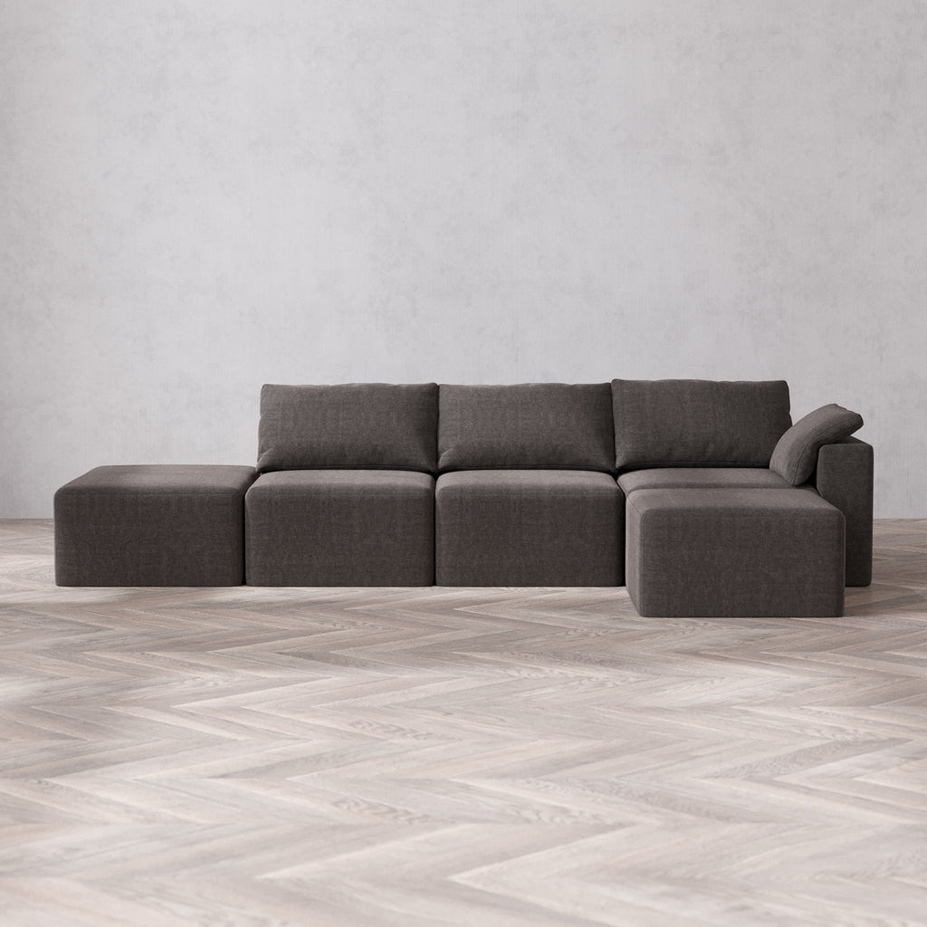 Slipcover Only - Modular Washable 3-Seater Open End Sectional Cloud Sofa in Truffle | Right-Facing Arm