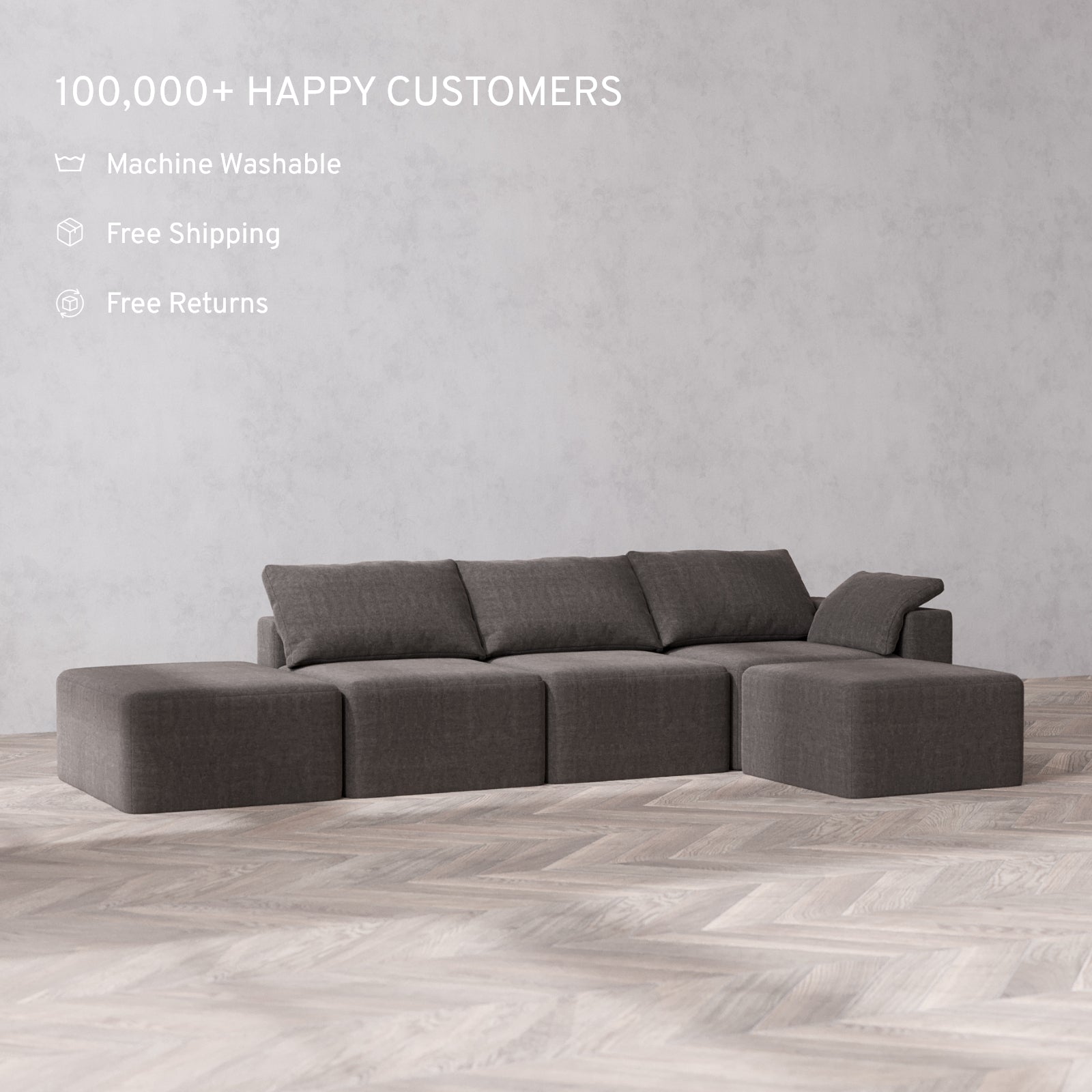 Machine Washable: Every piece of fabric—including the internal quilted duvet—is fully removable and machine washable. It’s the only Cloud-style sofa you can truly deep clean, effortlessly.