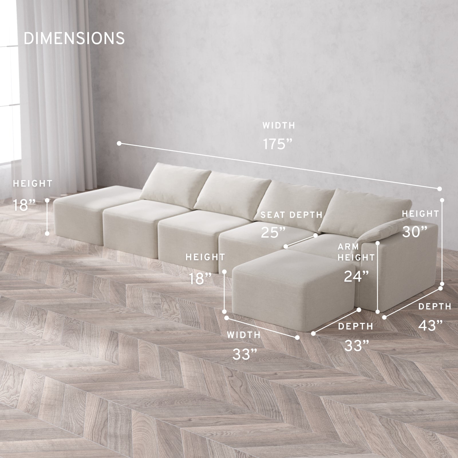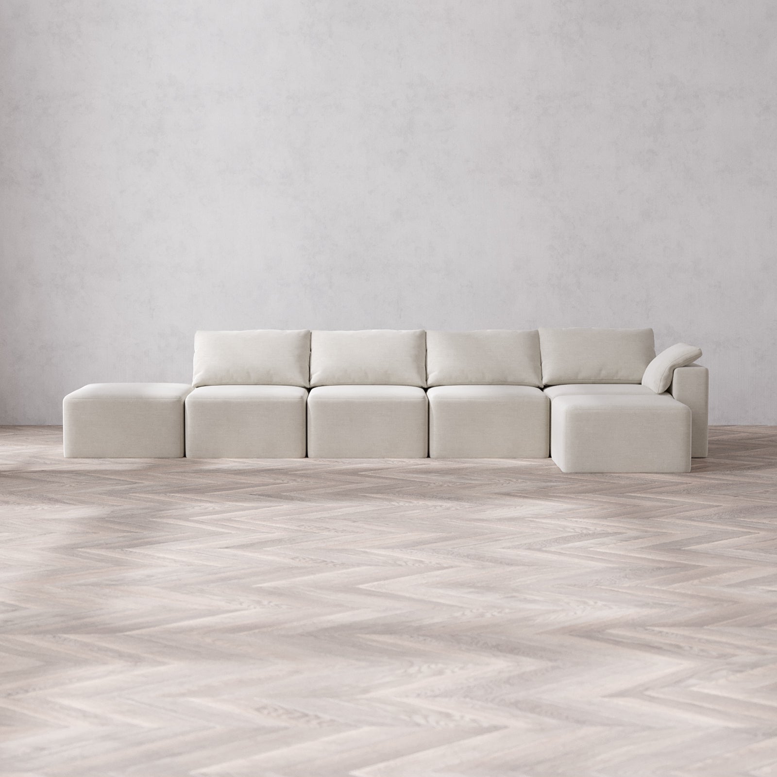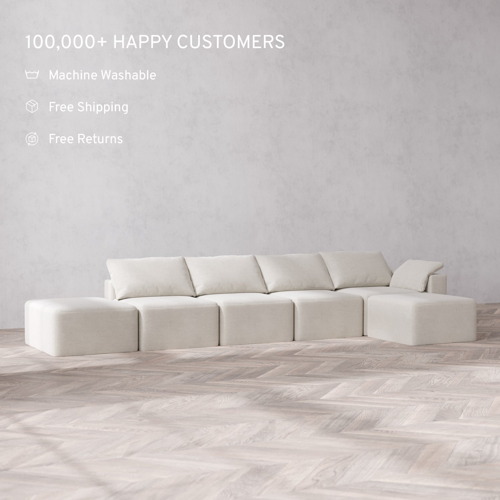 Slipcover Only - Modular Washable 4-Seater Open End Sectional Cloud Sofa in Cashew | Right-Facing Arm