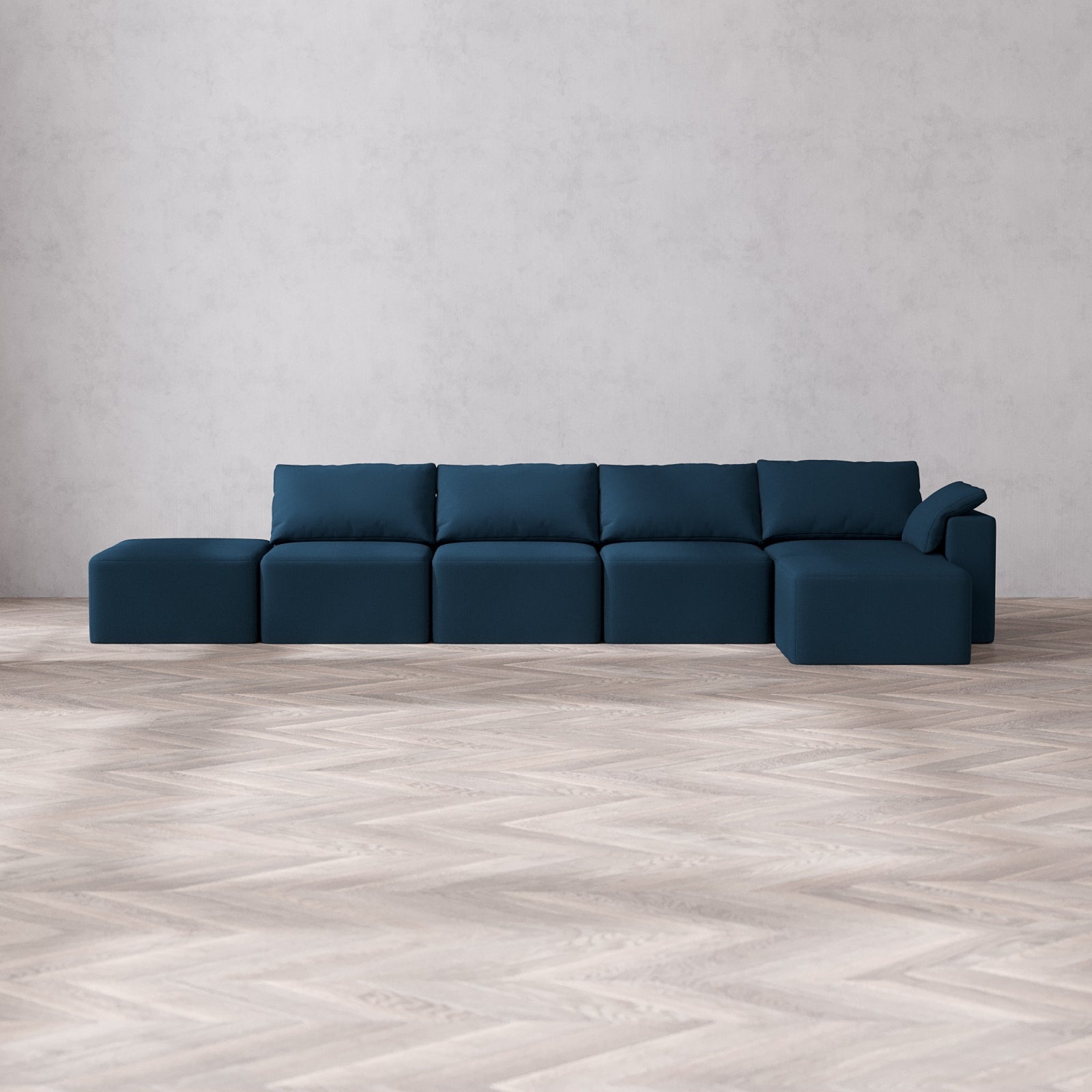 Slipcover Only - Modular Washable 4-Seater Open End Sectional Cloud Sofa in Lazuli | Right-Facing Arm