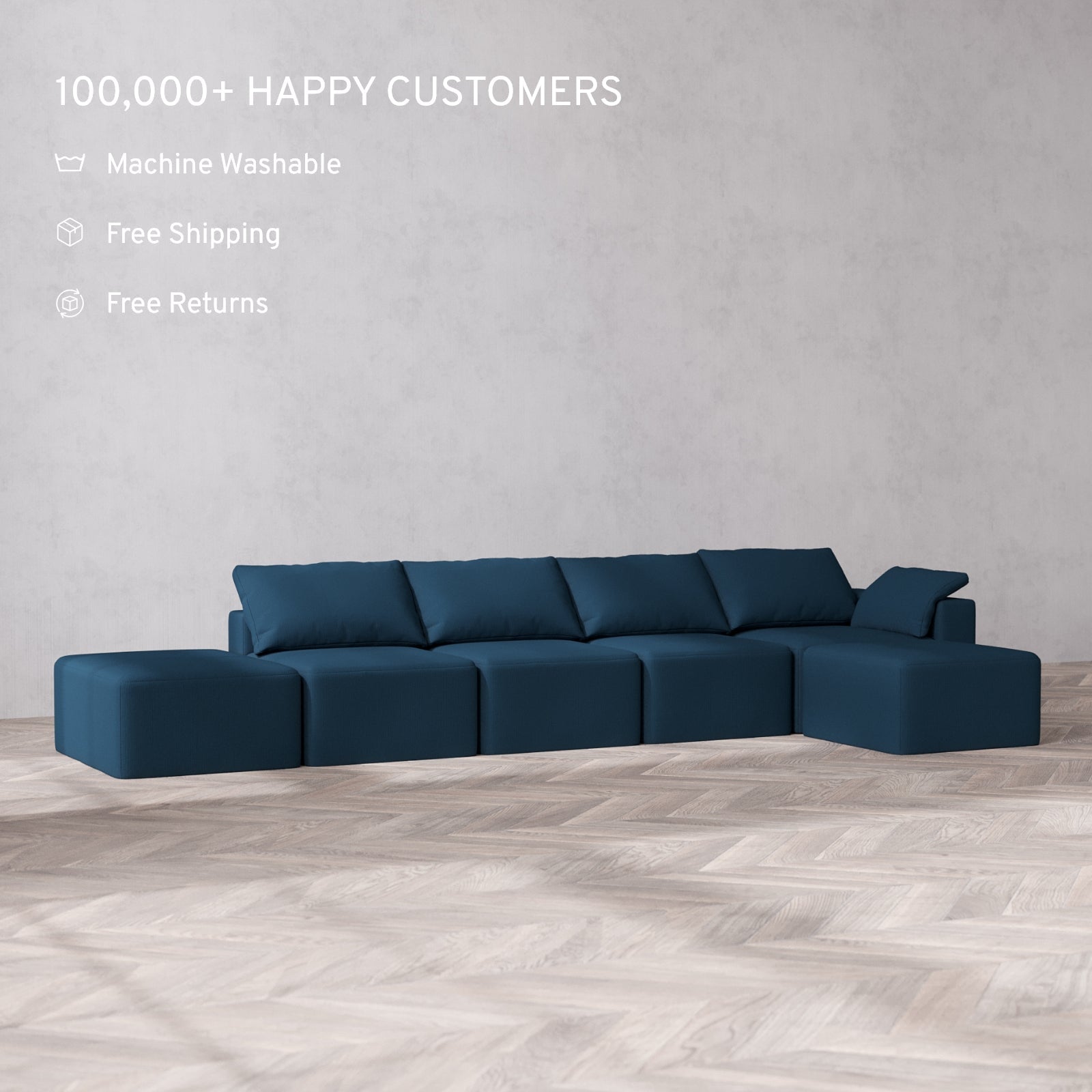 Machine Washable: Every piece of fabric—including the internal quilted duvet—is fully removable and machine washable. It’s the only Cloud-style sofa you can truly deep clean, effortlessly.