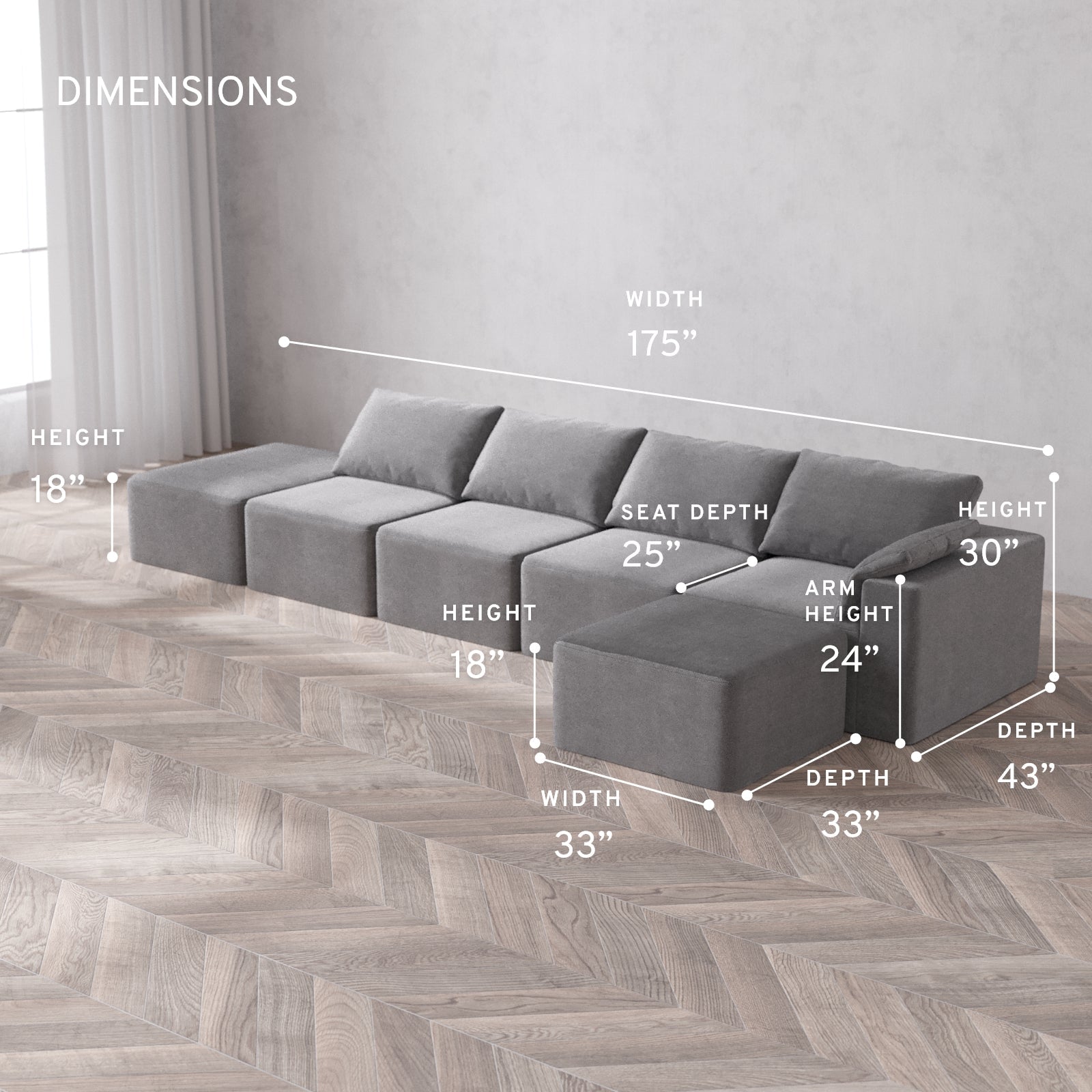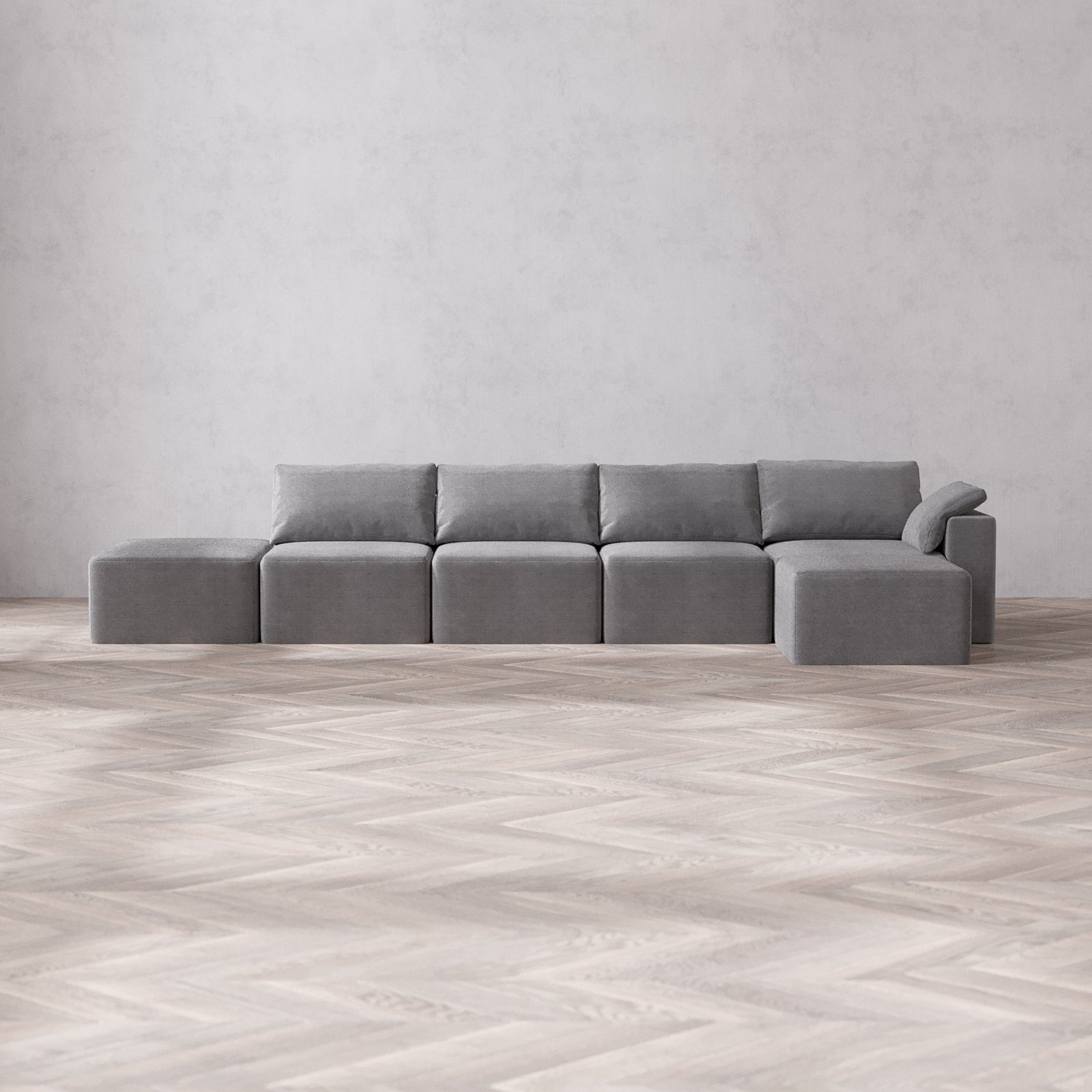Slipcover Only - Modular Washable 4-Seater Open End Sectional Cloud Sofa in Slate | Right-Facing Arm