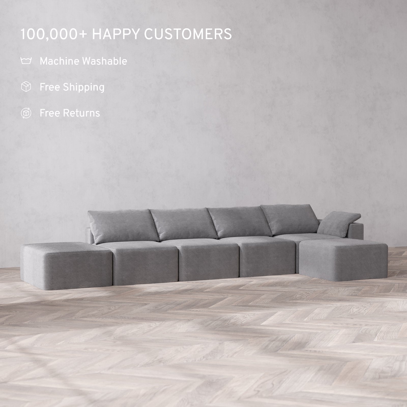 Machine Washable: Every piece of fabric—including the internal quilted duvet—is fully removable and machine washable. It’s the only Cloud-style sofa you can truly deep clean, effortlessly.