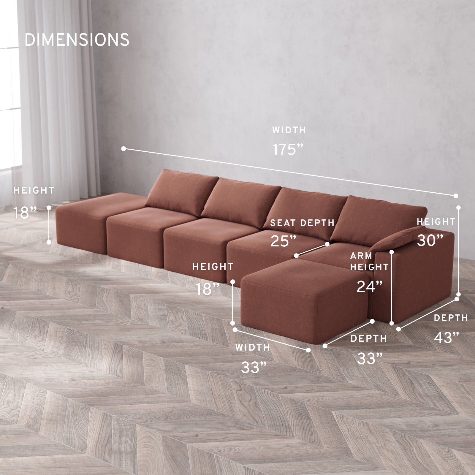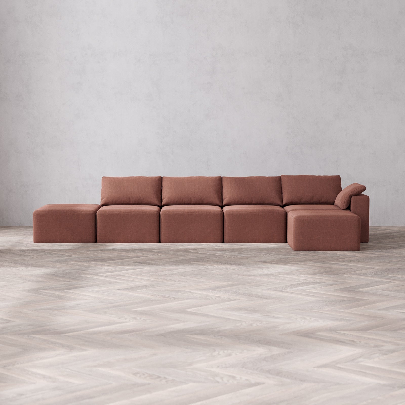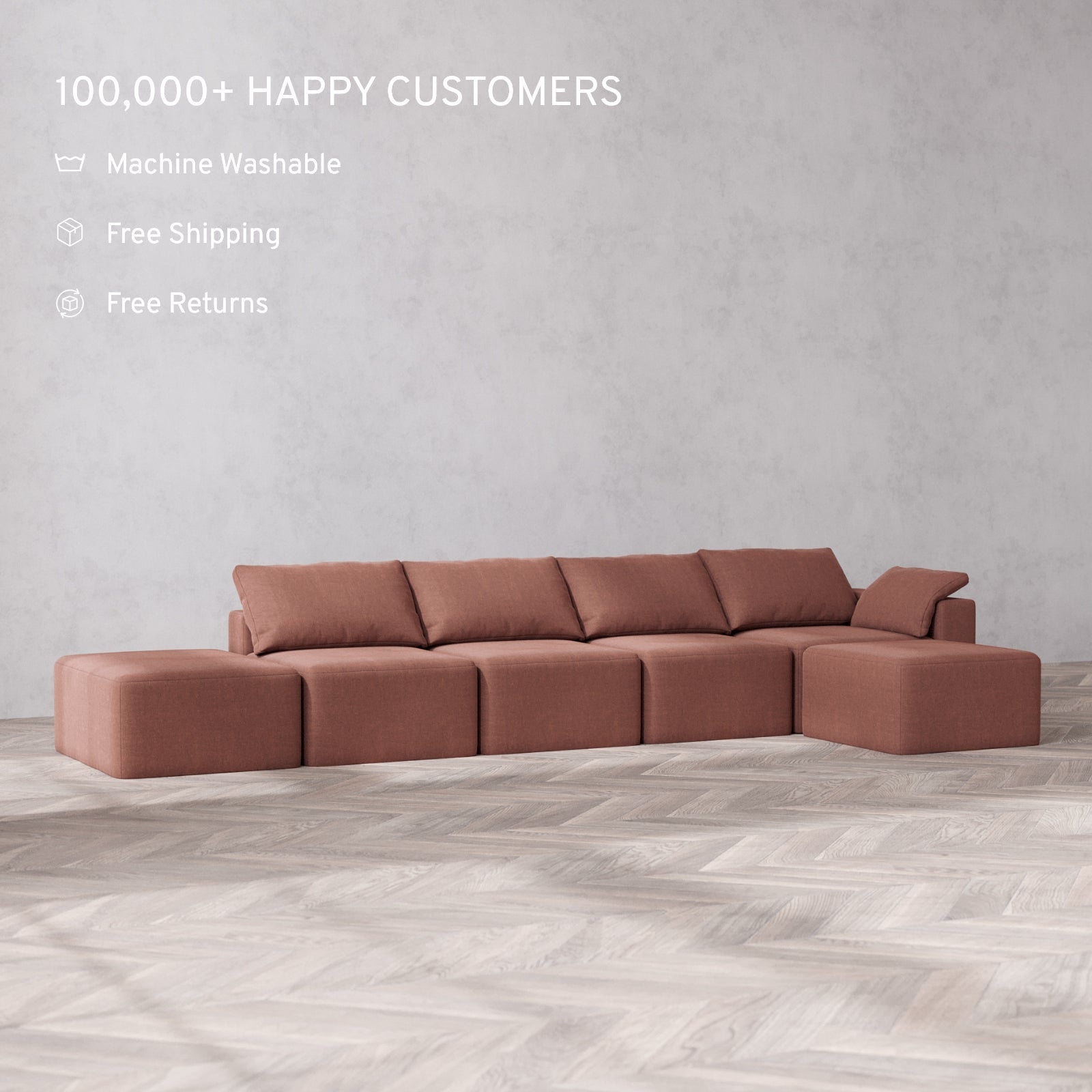 Slipcover Only - Modular Washable 4-Seater Open End Sectional Cloud Sofa in Sumac | Right-Facing Arm