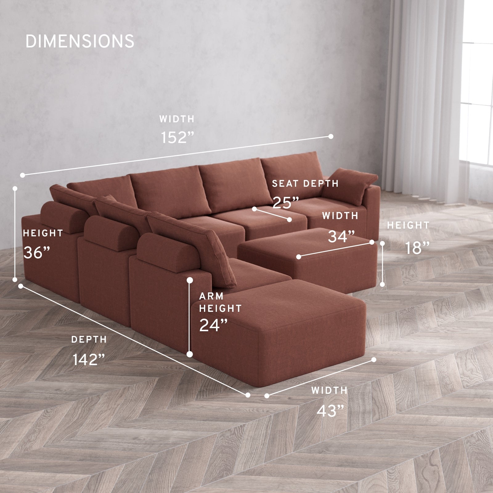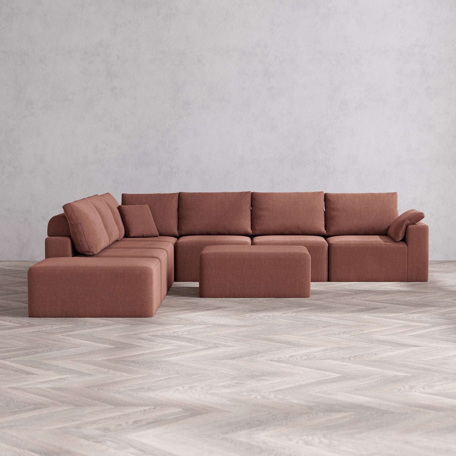 Slipcover Only - Modular Washable 7-Seater Open End Corner Sectional + Chaise Ottoman Cloud + Bolster Sofa in Sumac | Right-Facing Arm