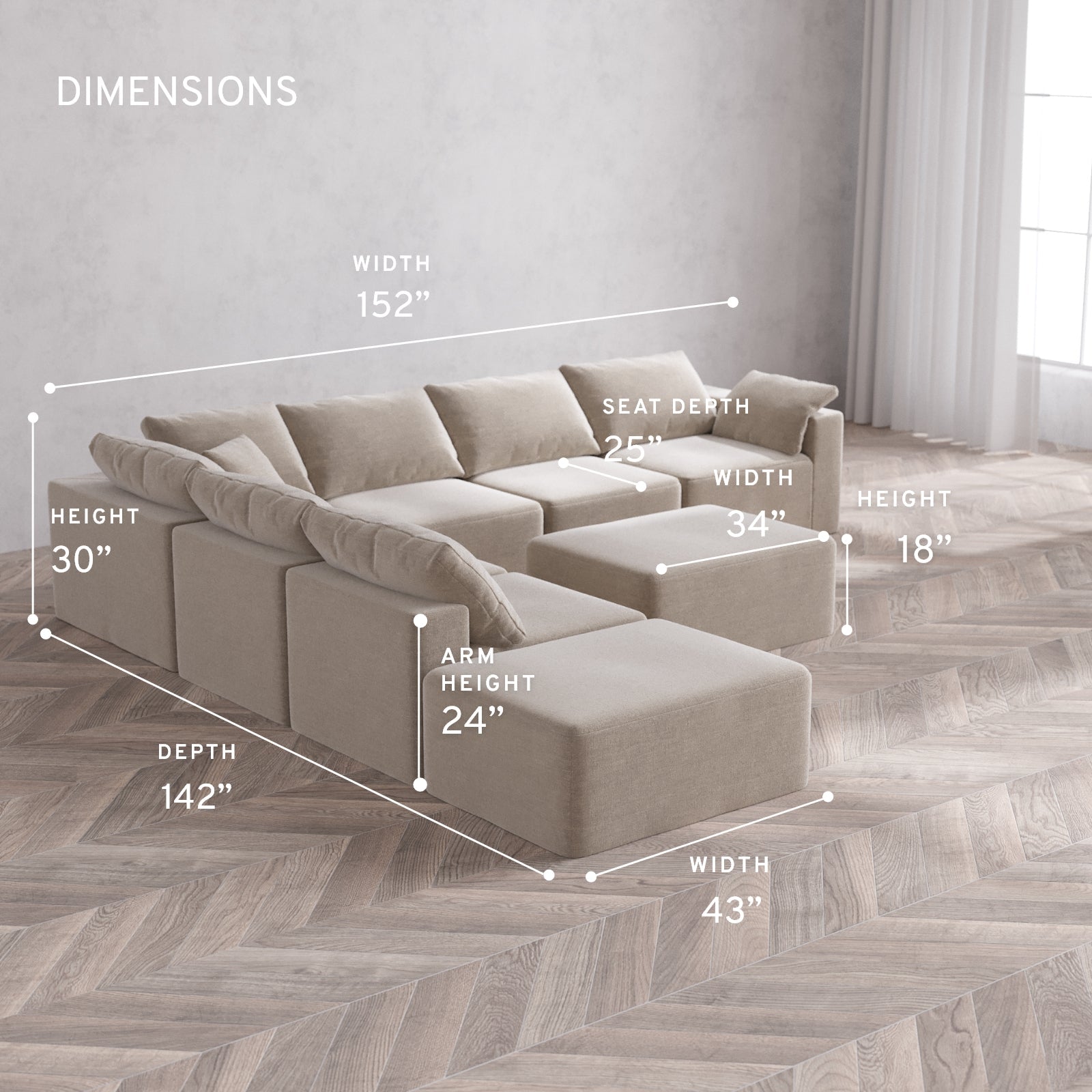 Machine Washable: Every piece of fabric—including the internal quilted duvet—is fully removable and machine washable. It’s the only Cloud-style sofa you can truly deep clean, effortlessly.