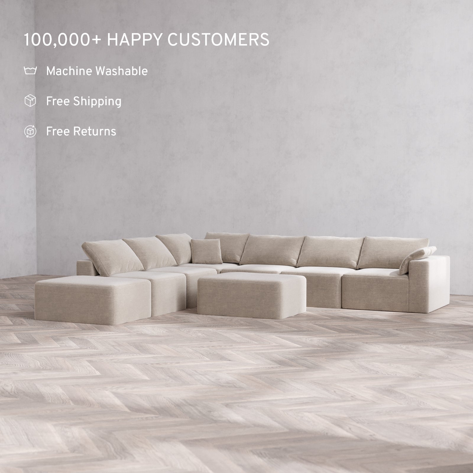 Slipcover Only - Modular Washable 7-Seater Open End Corner Sectional + Chaise Ottoman Cloud Sofa in Caraway | Right-Facing Arm
