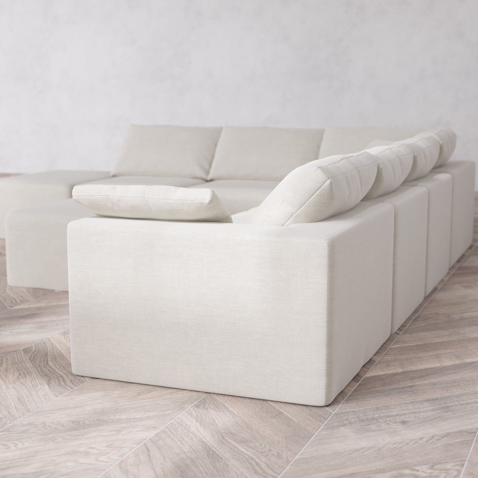 Slipcover Only - Modular Washable 7-Seater Open End Corner Sectional + Chaise Ottoman Cloud Sofa in Cashew | Right-Facing Arm