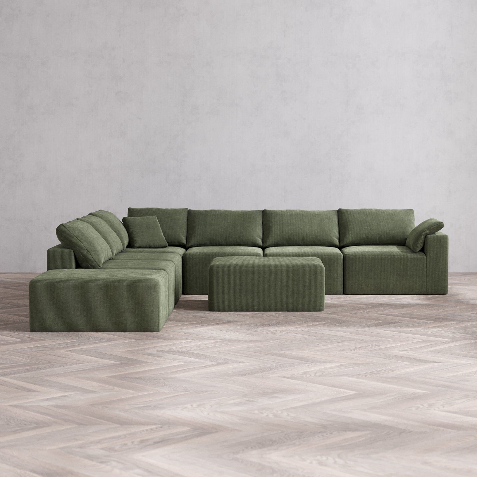 Slipcover Only - Modular Washable 7-Seater Open End Corner Sectional + Chaise Ottoman Cloud Sofa in Juniper | Right-Facing Arm