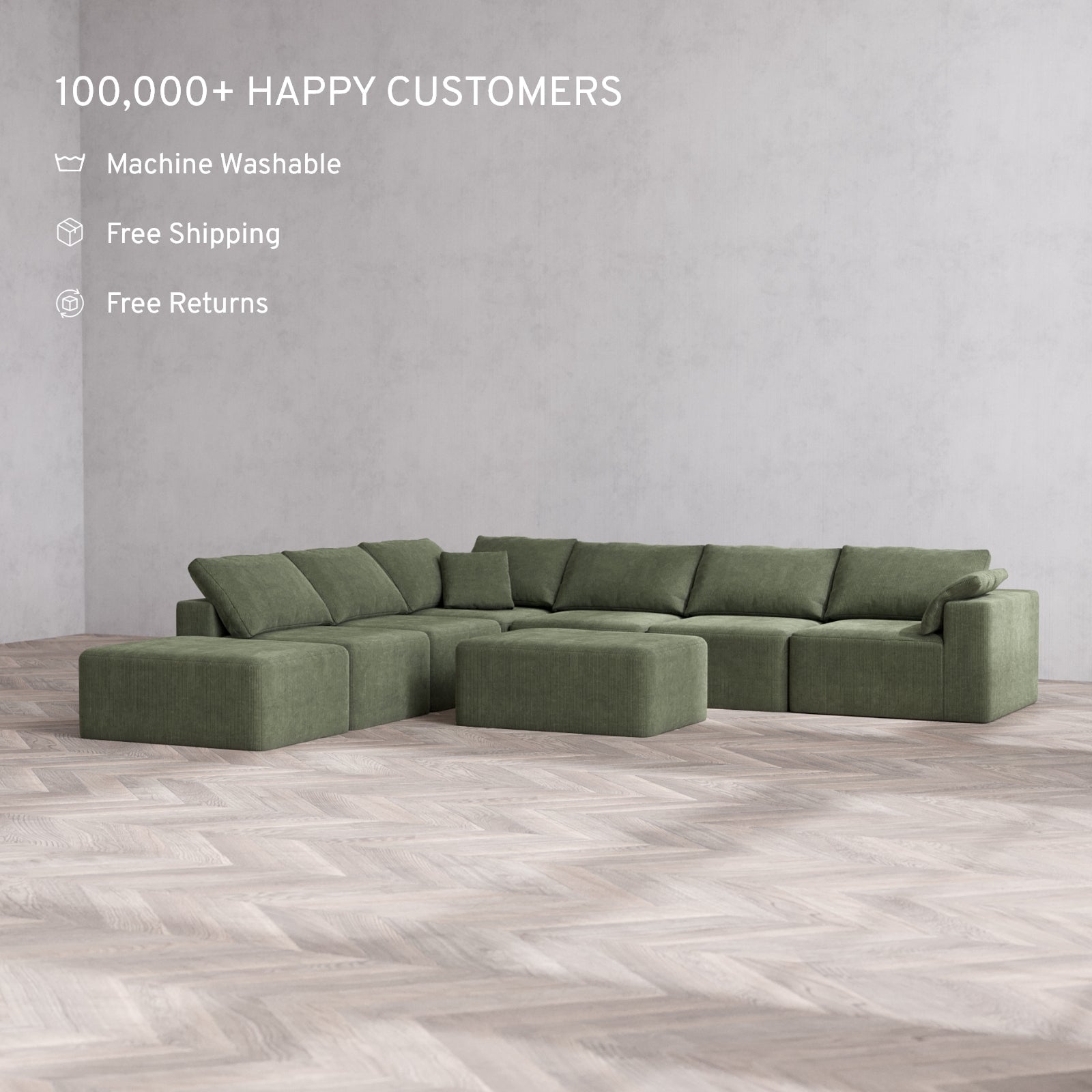 Machine Washable: Every piece of fabric—including the internal quilted duvet—is fully removable and machine washable. It’s the only Cloud-style sofa you can truly deep clean, effortlessly.