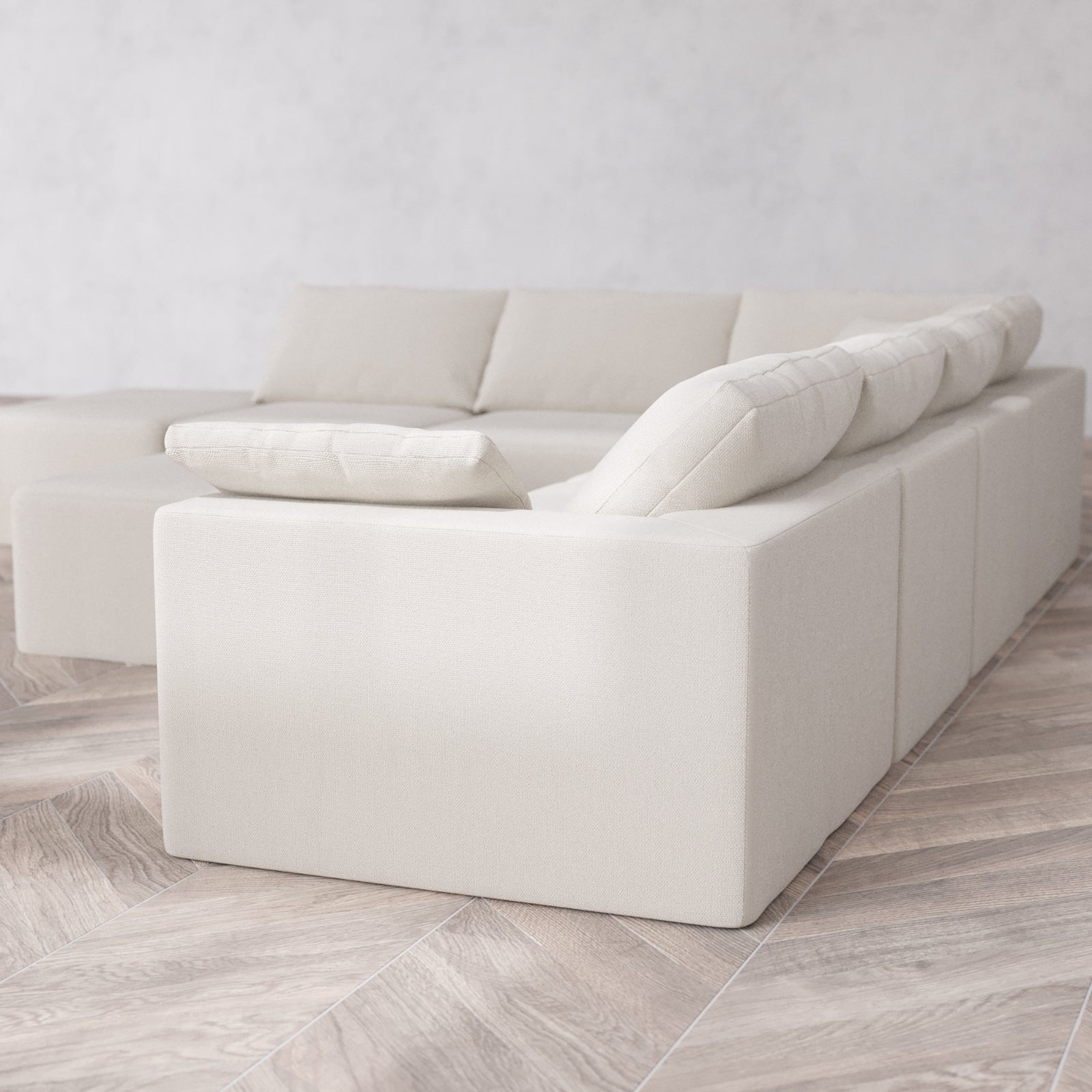 Slipcover Only - Modular Washable 7-Seater Open End Corner Sectional + Chaise Ottoman Cloud Sofa in Pearl | Right-Facing Arm