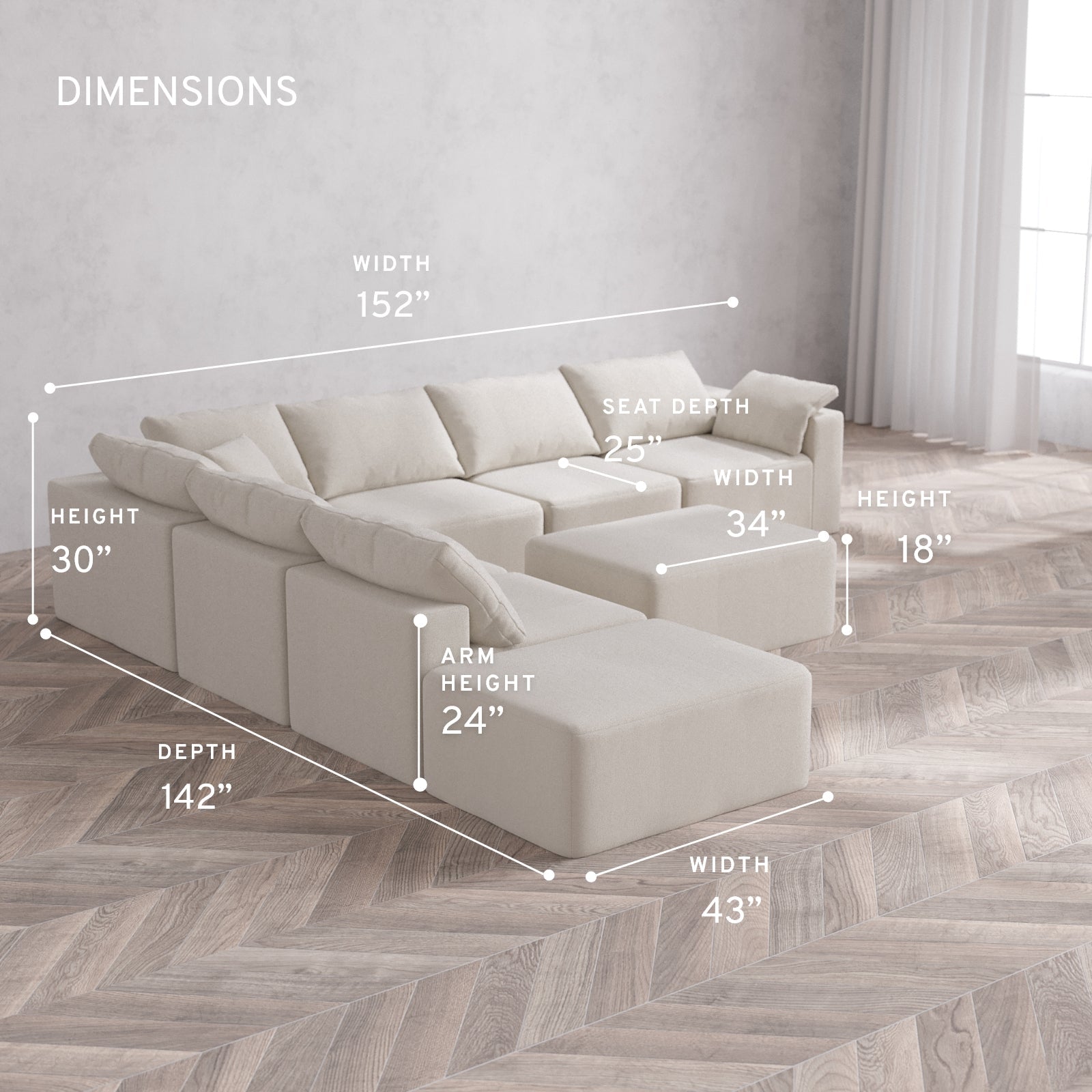 Machine Washable: Every piece of fabric—including the internal quilted duvet—is fully removable and machine washable. It’s the only Cloud-style sofa you can truly deep clean, effortlessly.
