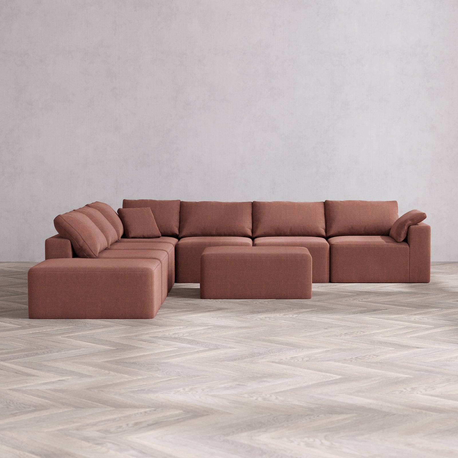 Slipcover Only - Modular Washable 7-Seater Open End Corner Sectional + Chaise Ottoman Cloud Sofa in Sumac | Right-Facing Arm