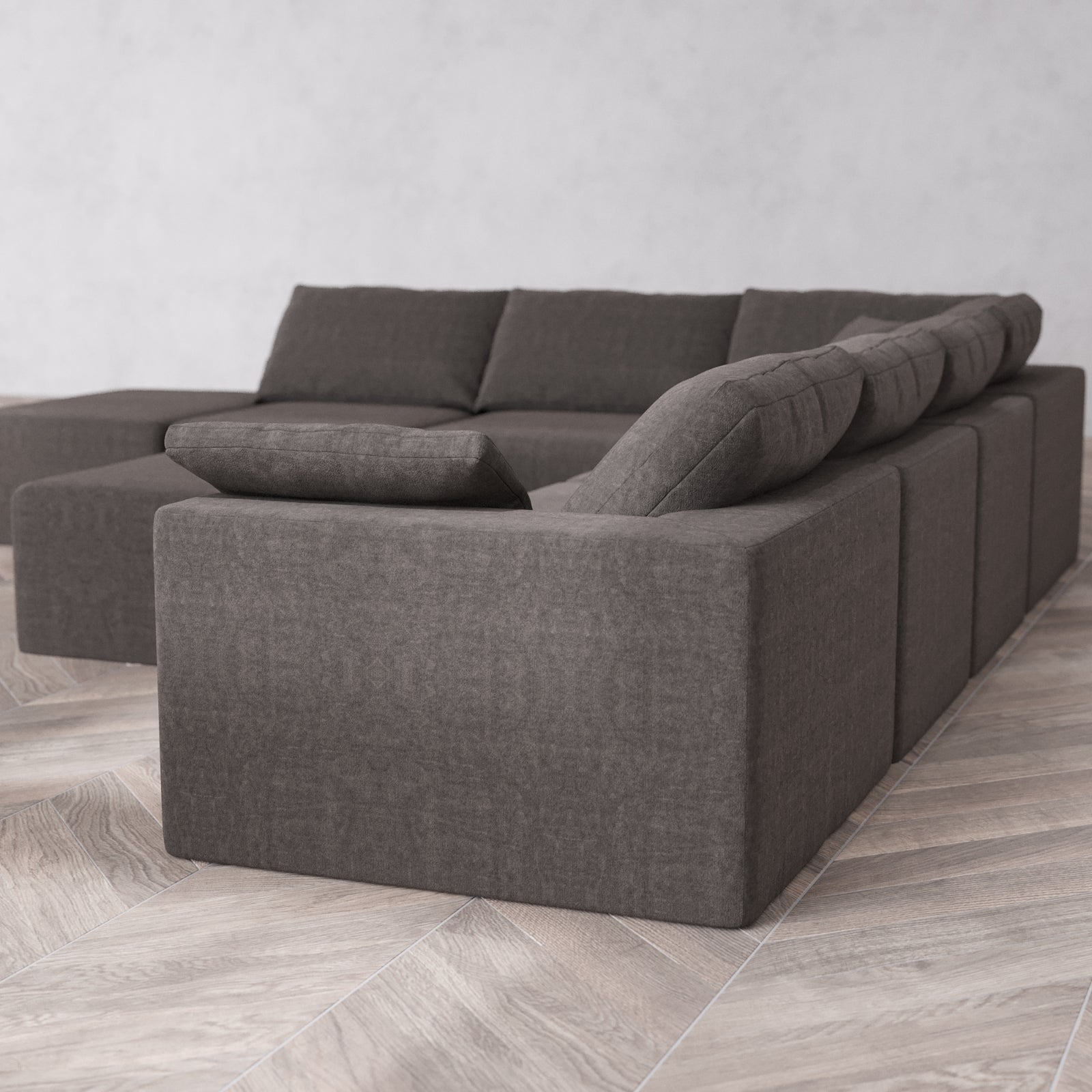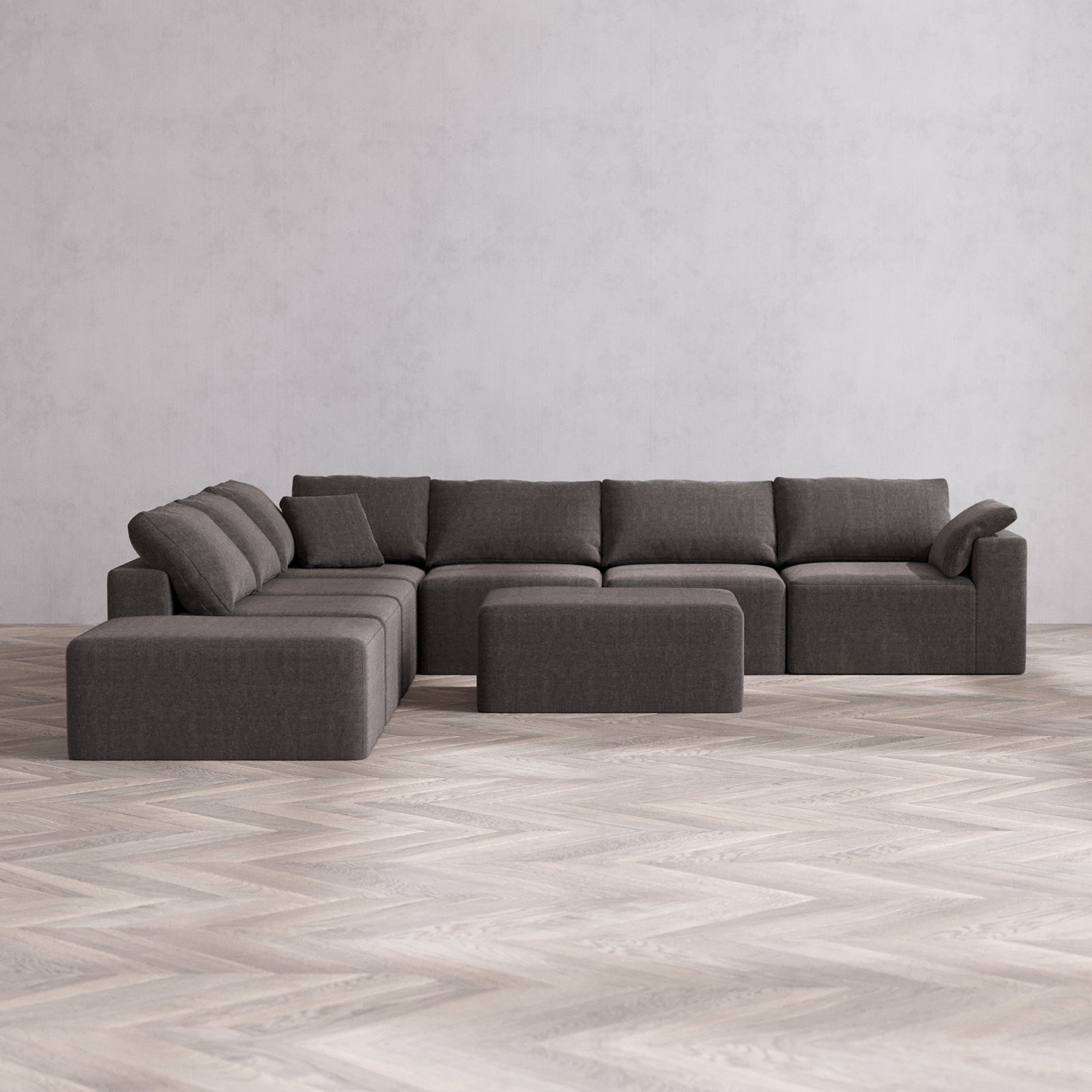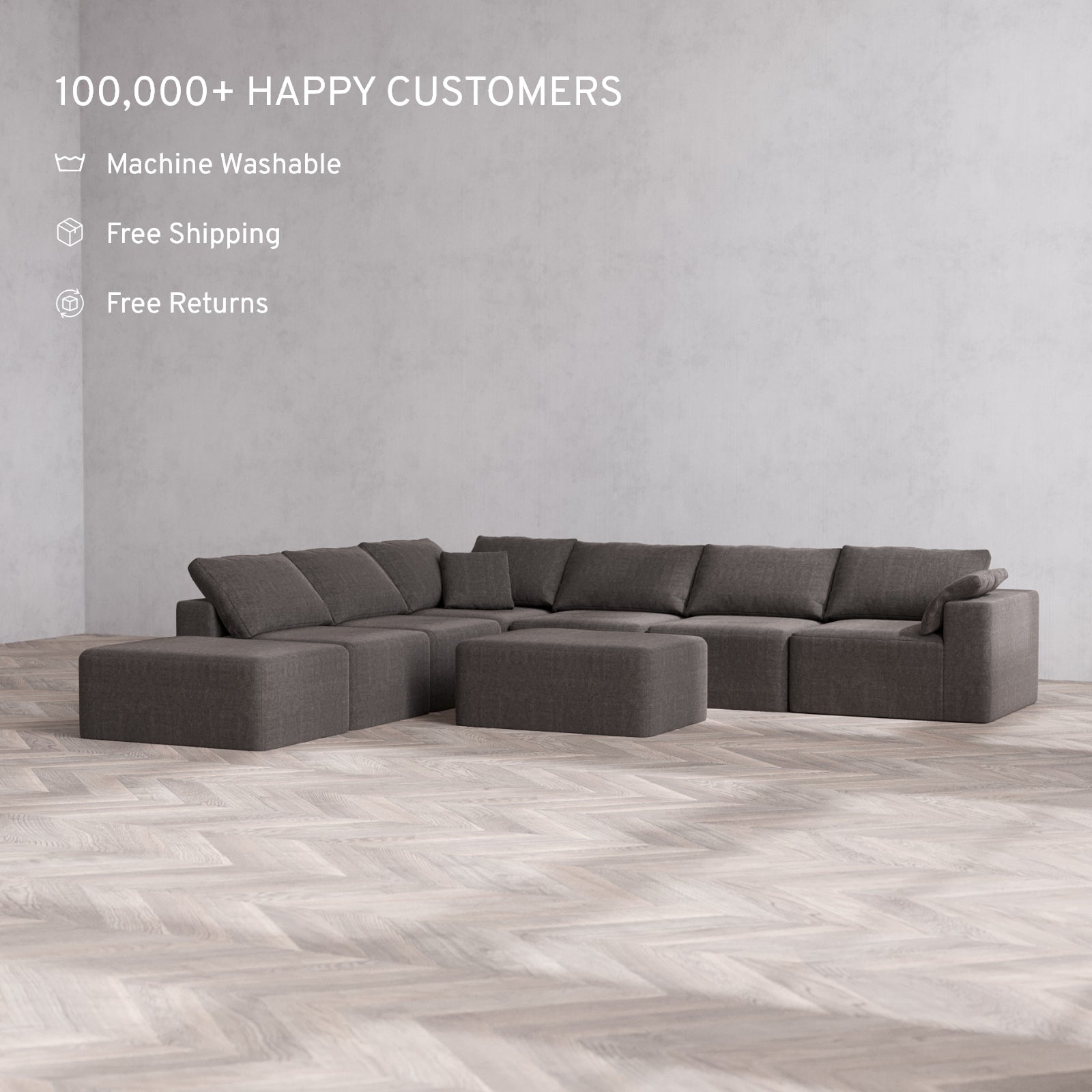 Slipcover Only - Modular Washable 7-Seater Open End Corner Sectional + Chaise Ottoman Cloud Sofa in Truffle | Right-Facing Arm