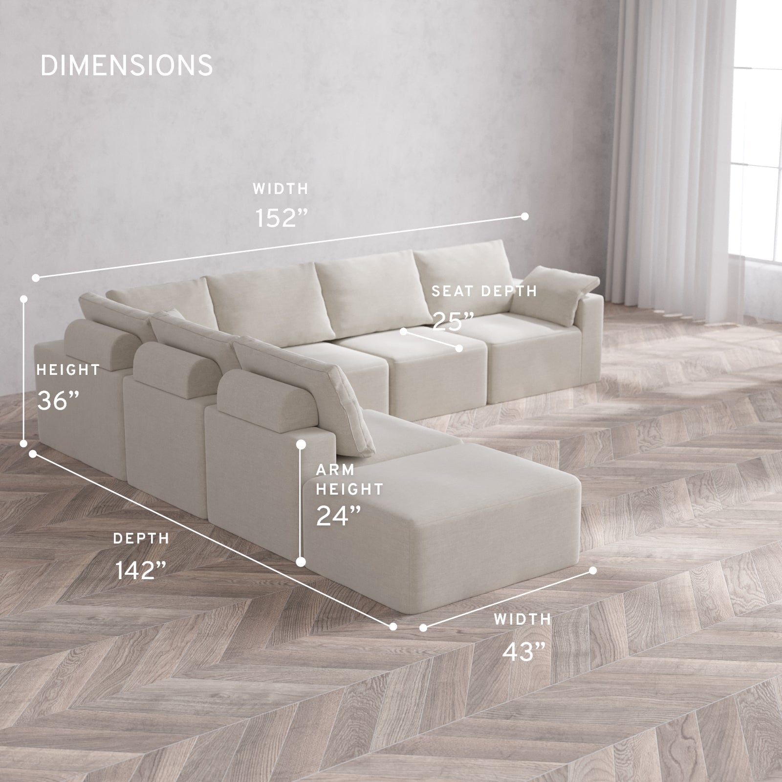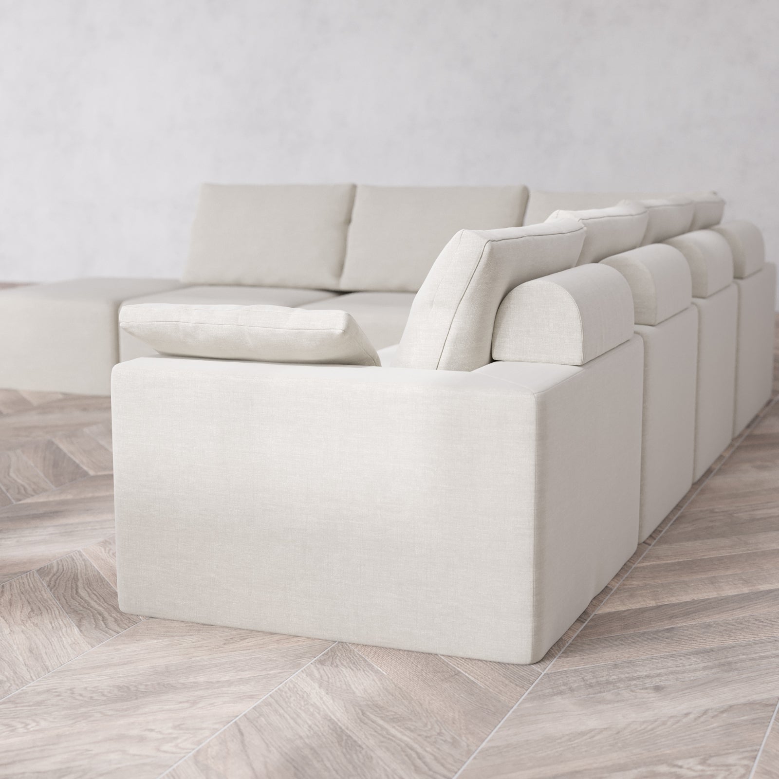 Slipcover Only - Modular Washable 7-Seater Open End Corner Sectional Cloud + Bolster Sofa in Cashew | Right-Facing Arm