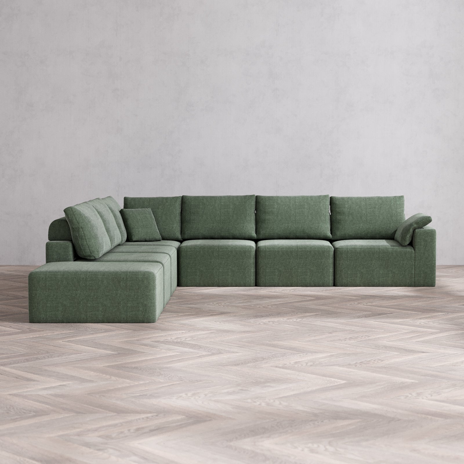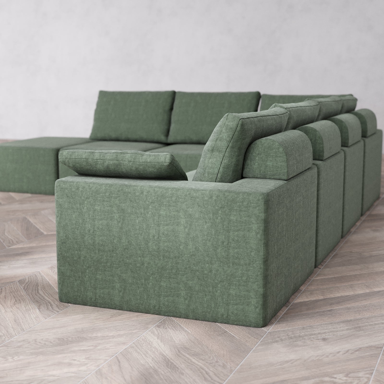 Slipcover Only - Modular Washable 7-Seater Open End Corner Sectional Cloud + Bolster Sofa in Sage | Right-Facing Arm