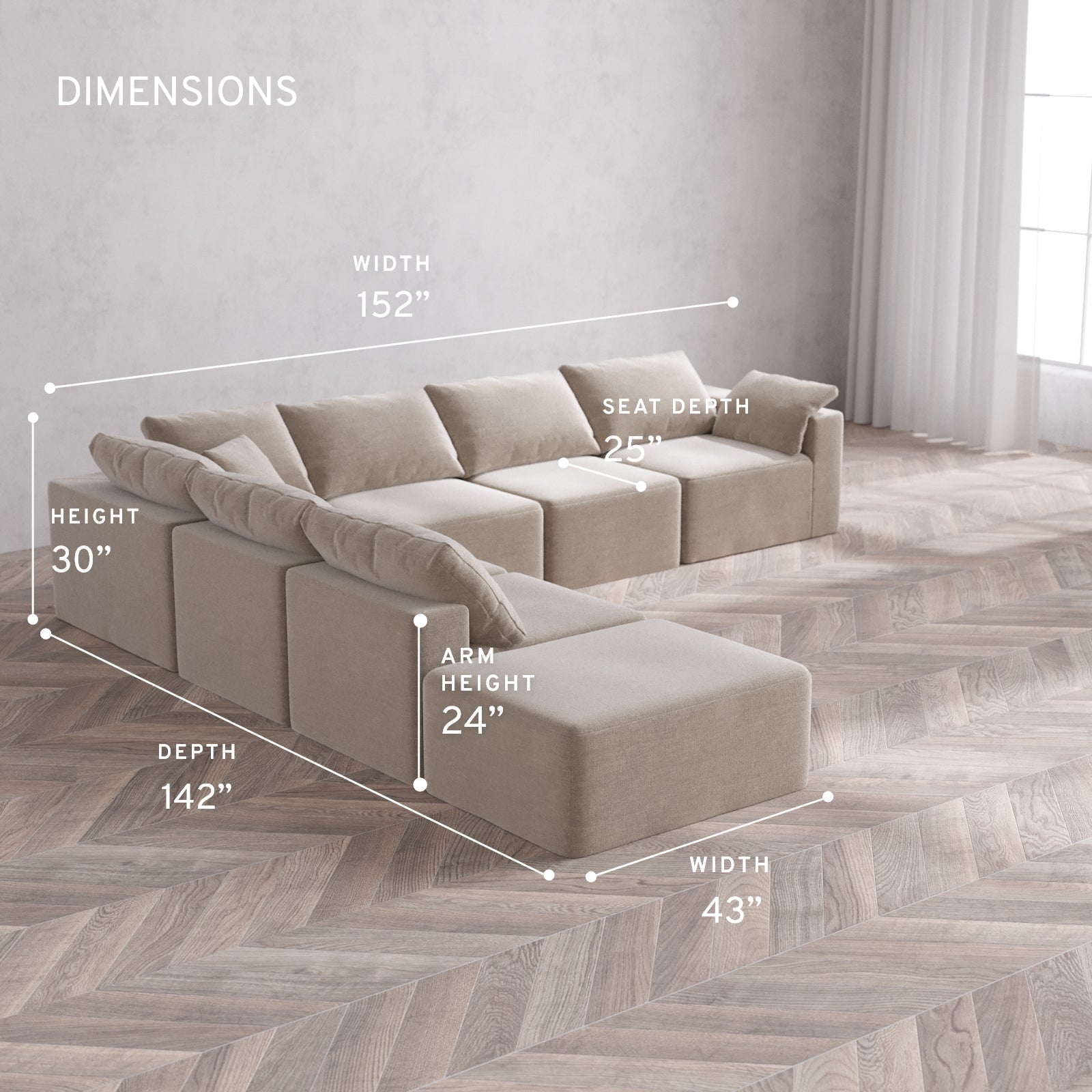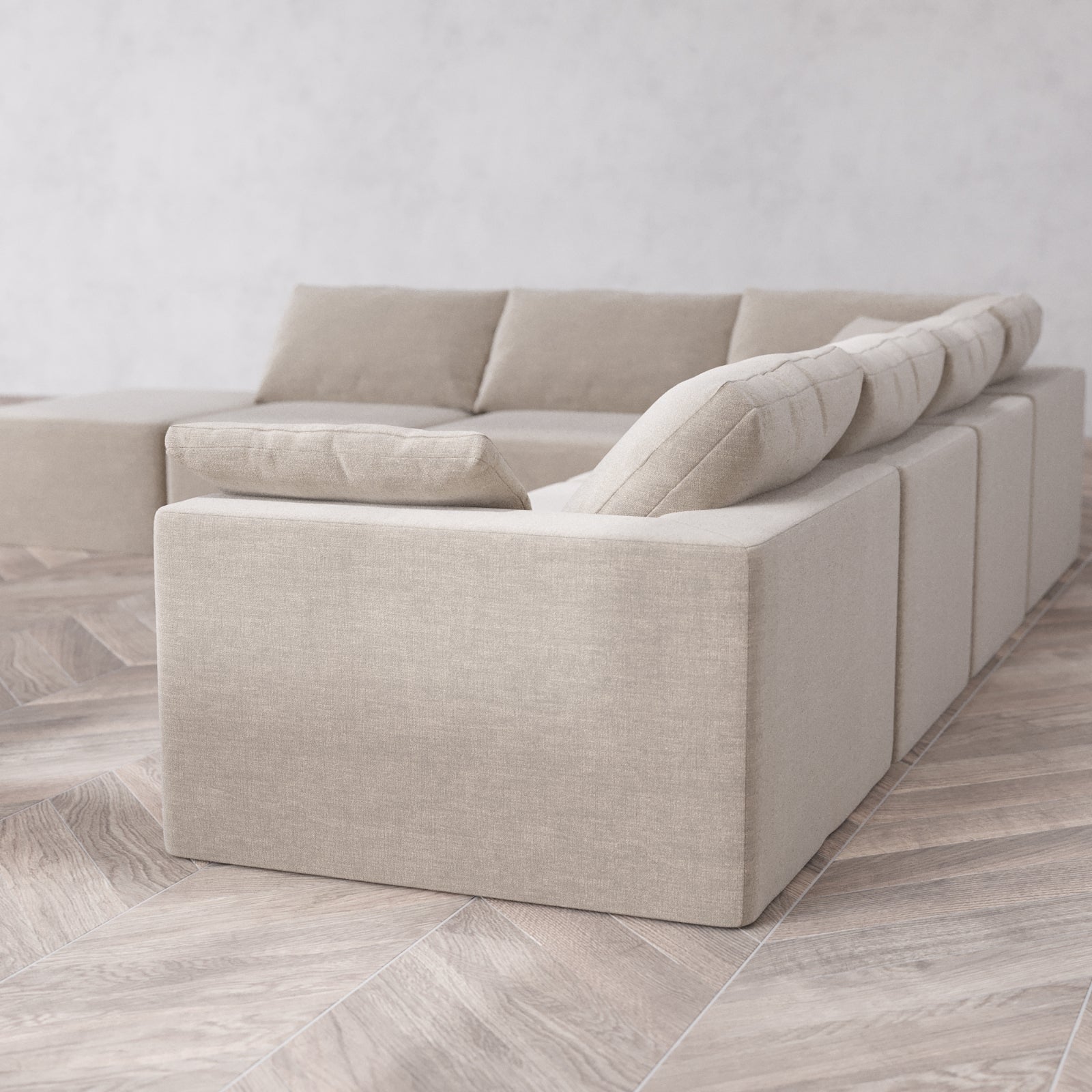 Slipcover Only - Modular Washable 7-Seater Open End Corner Sectional Cloud Sofa in Caraway | Right-Facing Arm